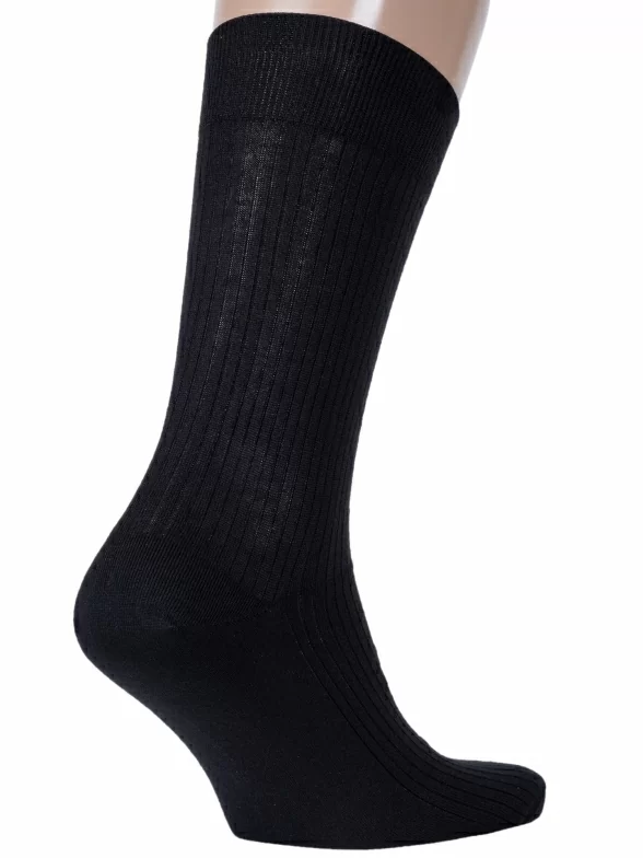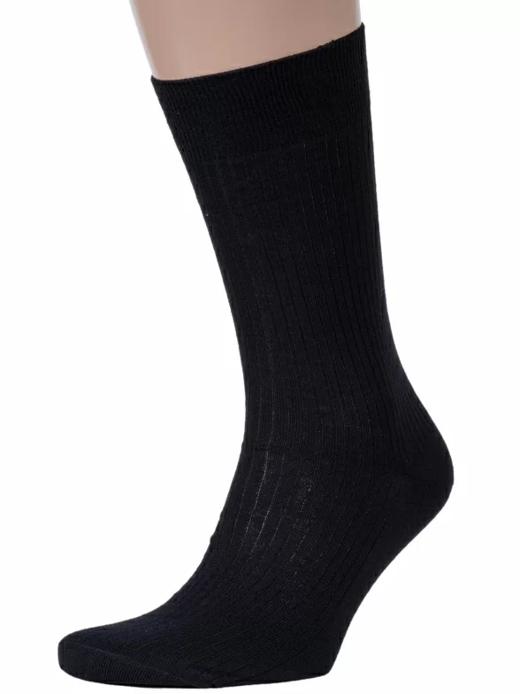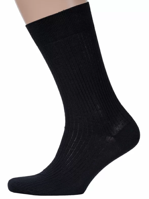 Летние или круглогодичные средней длины мужские носки, цвет черный, классические, шов кеттельный (бесшовная технология), принт (рисунок): в рубчик, однотонный, состав: 100% хлопок, арт. М3-11946. Производитель «ООО Орудьевский трикотаж, Россия» под брендом «Rusocks (орудьевский трикотаж)».