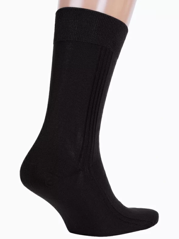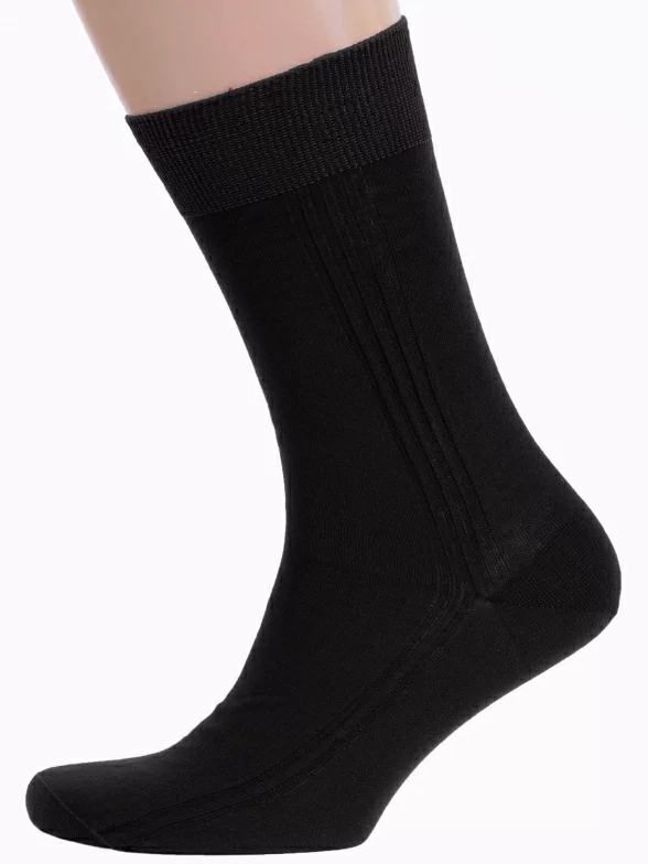 Летние или круглогодичные средней длины мужские носки, цвет черный, классические, шов кеттельный (бесшовная технология), принт (рисунок): полоски, однотонный, небольшой рисунок, состав: 100% хлопок, арт. М3-11001. Производитель «ООО Орудьевский трикотаж, Россия» под брендом «Rusocks (орудьевский трикотаж)».