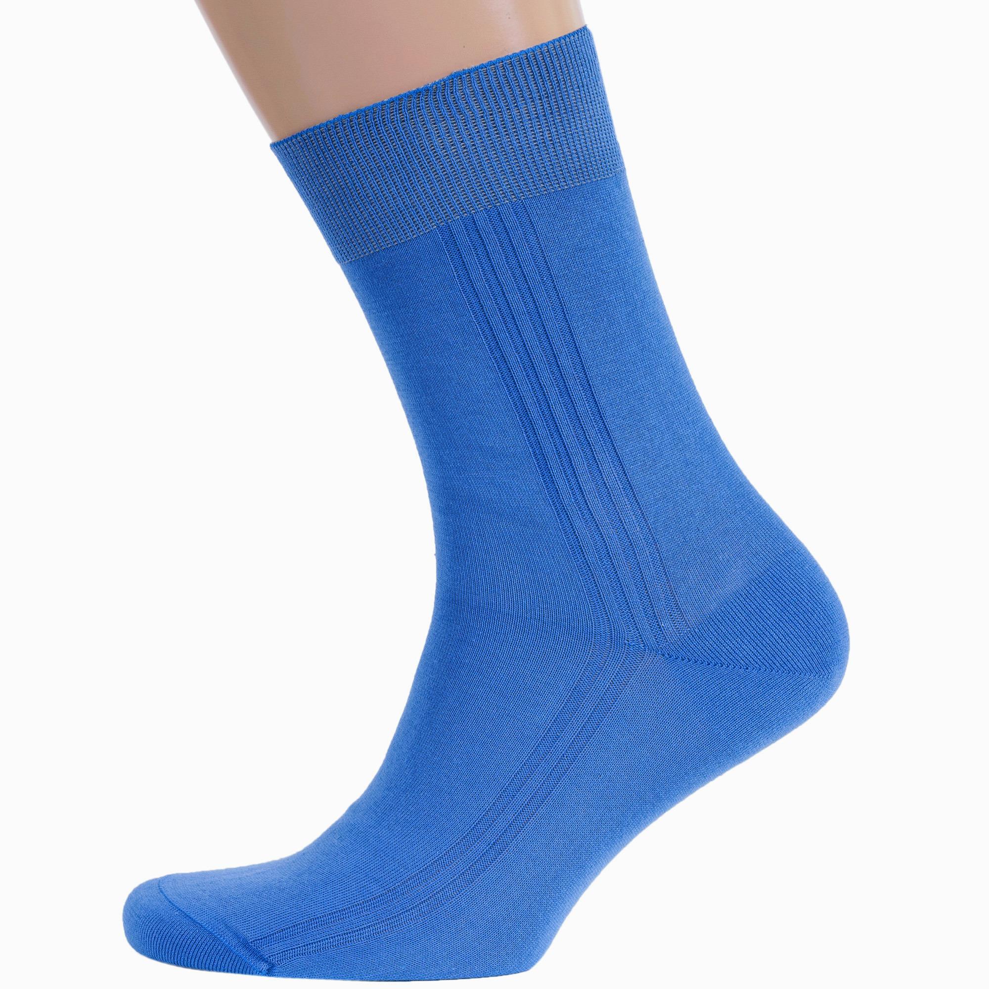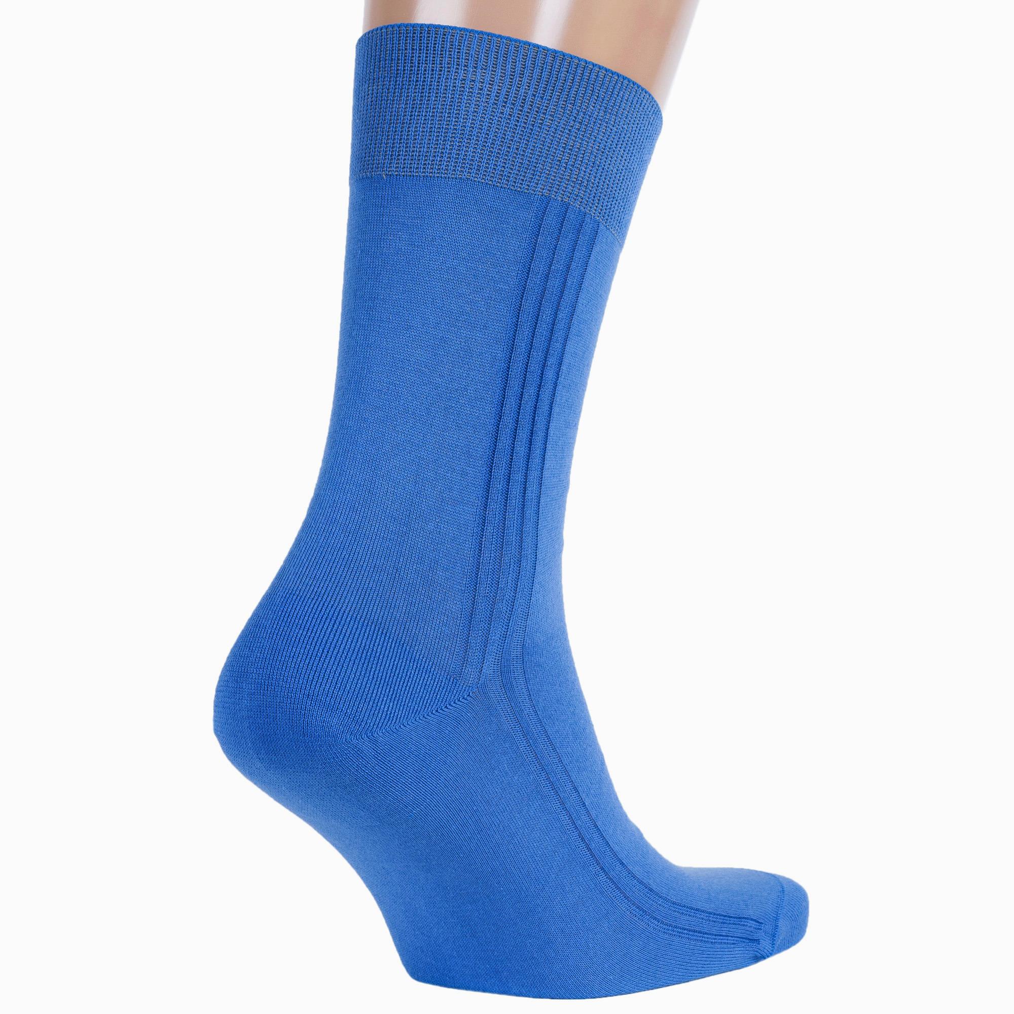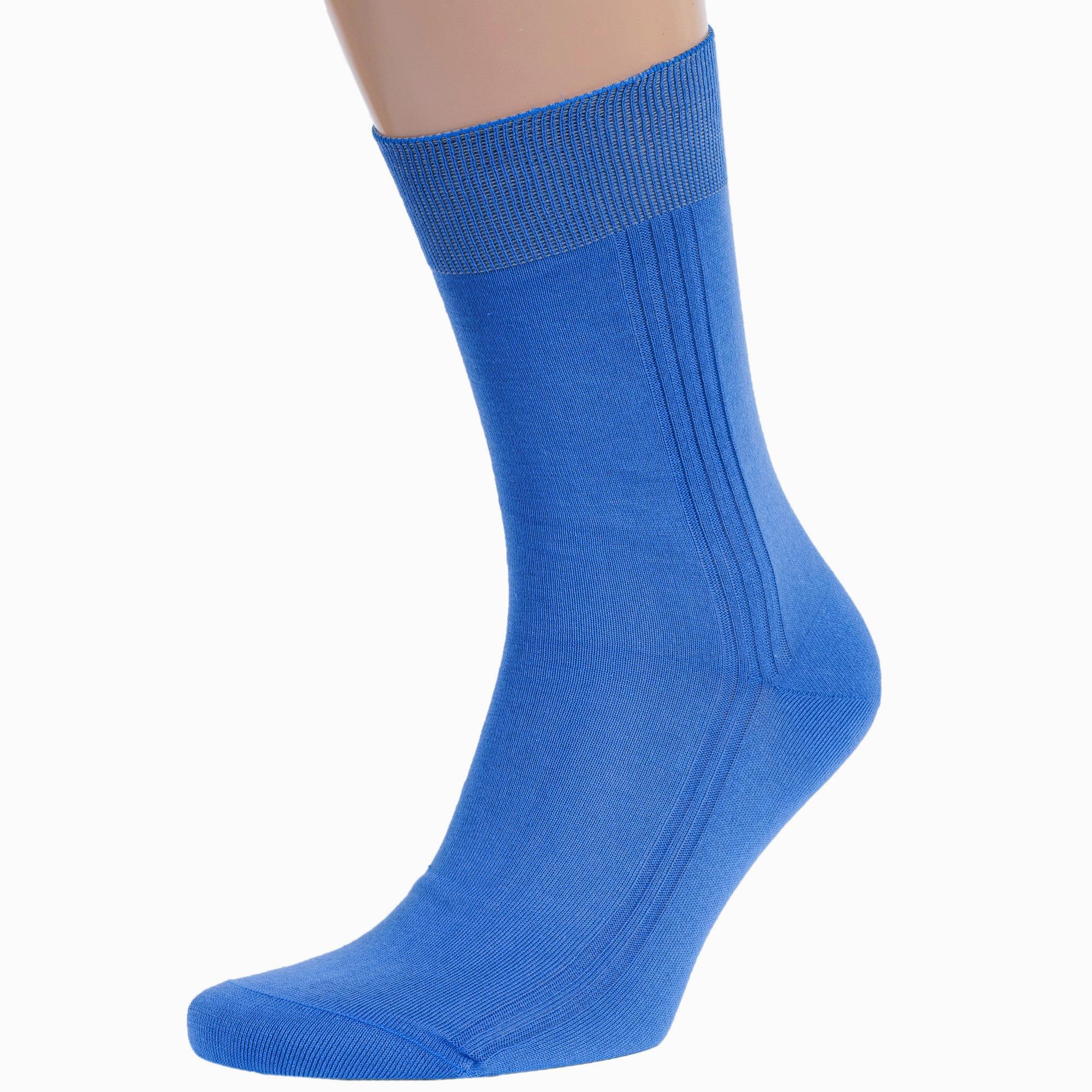 Летние или круглогодичные средней длины мужские носки, цвет голубой, классические, шов кеттельный (бесшовная технология), принт (рисунок): полоски, однотонный, небольшой рисунок, состав: 100% хлопок, арт. М3-11001. Производитель «ООО Орудьевский трикотаж, Россия» под брендом «Rusocks (орудьевский трикотаж)».