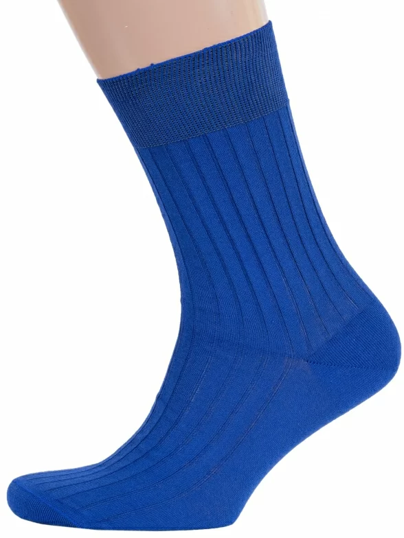 Летние или круглогодичные средней длины мужские носки, цвет синий, классические, шов кеттельный (бесшовная технология), принт (рисунок): в рубчик, однотонный, состав: 100% хлопок, арт. М3-11001. Производитель «ООО Орудьевский трикотаж, Россия» под брендом «Rusocks (орудьевский трикотаж)».