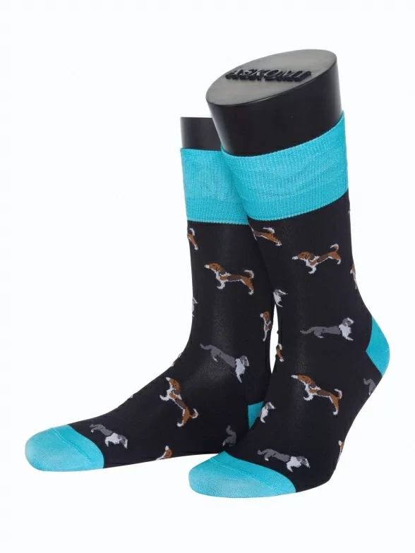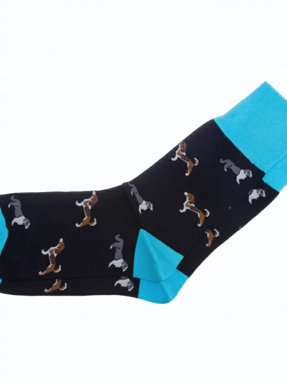 Оригинальные фантазийные носки из качественного трикотажа на основе мерсеризованного хлопка. Они оформлены узором с собаками и яркими контрастными деталями. Комфортная высокая резинка снижает нагрузку на сосуды. Приятная гладкая фактура мерсеризованного хлопка выгодно подчеркивает дизайн модели.