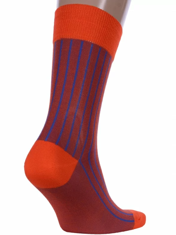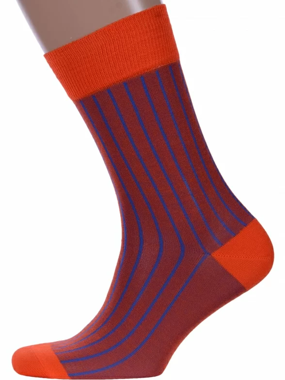 Летние или межсезонные средней длины мужские носки, цвет оранжевый, повседневные, шов плоский, принт (рисунок): полоски, состав: 80% мерсеризованный хлопок, 20% полиамид, арт. 18SC2. Производитель «ИП Супрун С.А., РФ, г. Москва» под брендом «Pingons (sergio di calze)».