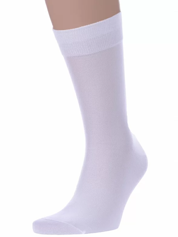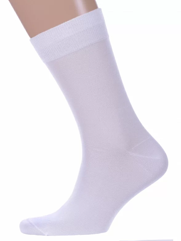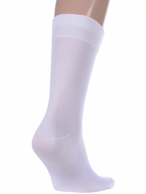 Летние или межсезонные средней длины мужские носки, цвет белый, классические, шов плоский, принт (рисунок): однотонный, без рисунков / узоров, состав: 80% мерсеризованный хлопок, 20% полиамид, арт. 17SC6. Производитель «ИП Супрун С.А., РФ, г. Москва» .