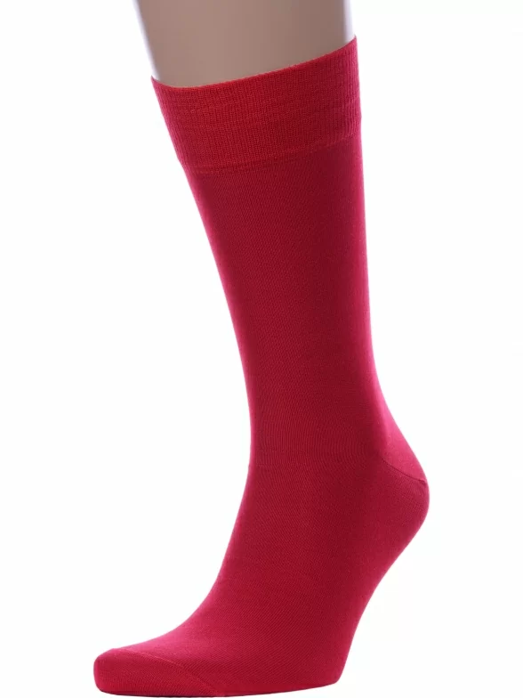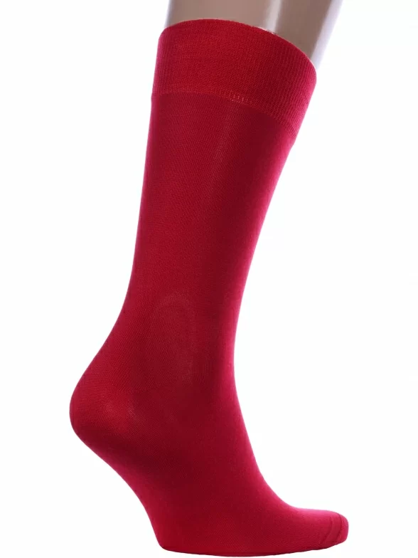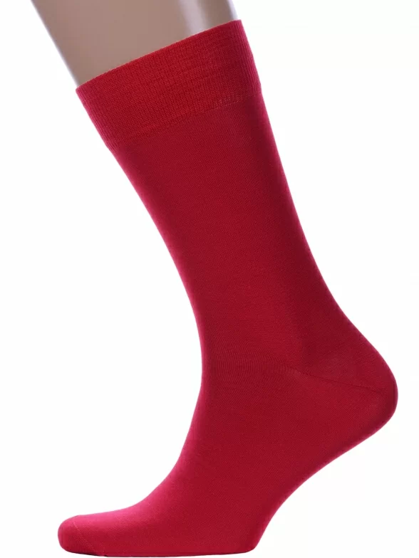 Летние или межсезонные средней длины мужские носки, цвет красный, классические, шов плоский, принт (рисунок): однотонный, без рисунков / узоров, состав: 80% мерсеризованный хлопок, 20% полиамид, арт. 17SC6. Производитель «ИП Супрун С.А., РФ, г. Москва» .
