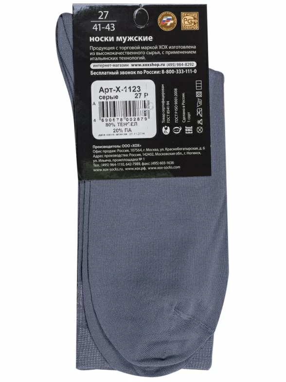 Мужские носки из тенселя ХОХ, X-1123, СЕРЫЕ