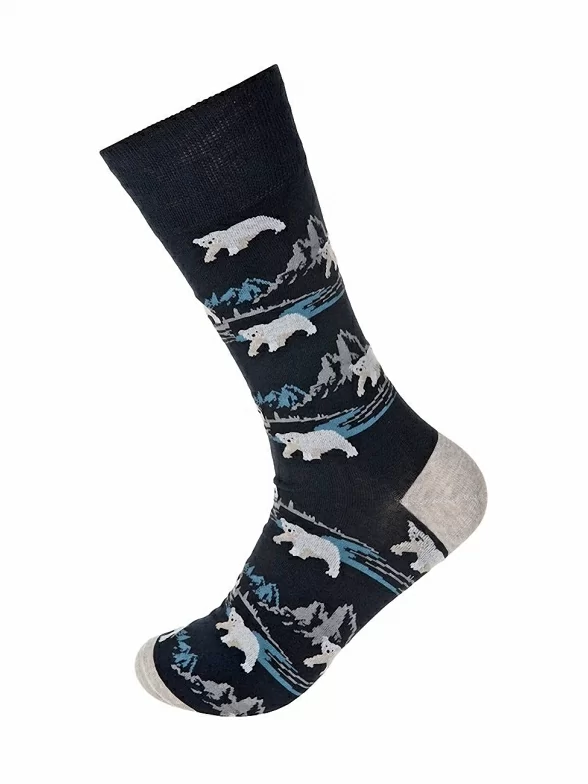 Красивые мужские носки с принтов в виде полярных пейзажей и белых медведей. Они изготовлены из трикотажа оптимальной плотности, отличающегося высоким процентом содержания натурального хлопка и оптимальной эластичностью. За счет новейших технологий окрашивания и самых качественных красителей носки John Frank сохраняют цвет даже после многочисленных стирок.