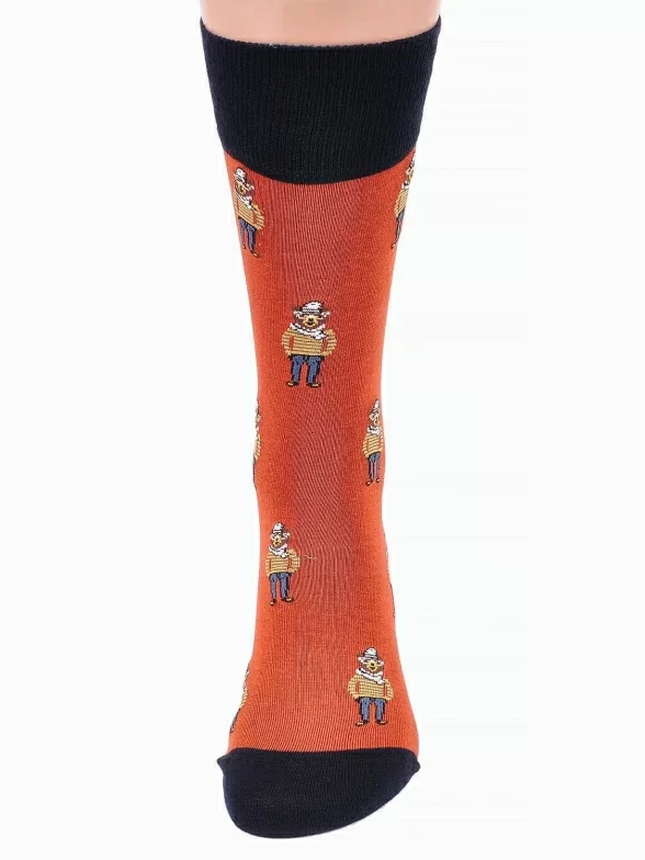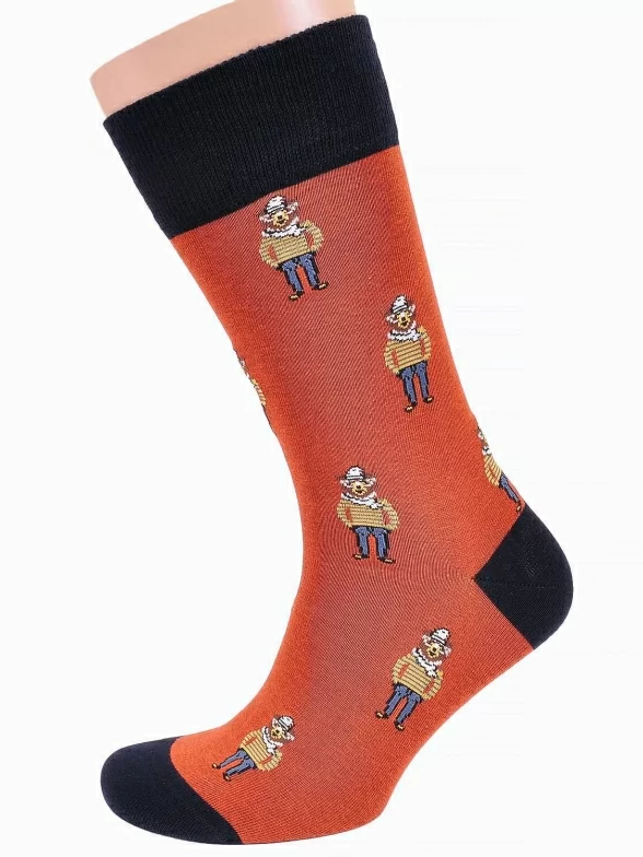 Мужские носки бренда JOHN FRANK с принтом в виде медведей в очках и шляпе.