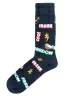 Яркий и крутой дизайн этих носков основан на оформлении комиксов. Модель смотрится оригинально и весело. Сами носки сделаны из качественного плотного трикотажа с высоким содержанием натурального хлопка, за счет чего модель идеально сидит на ноге. Носки отлично сочетаются с одеждой в стиле Casual и нарядами для веселых мероприятий без лишних формальностей.