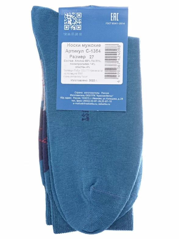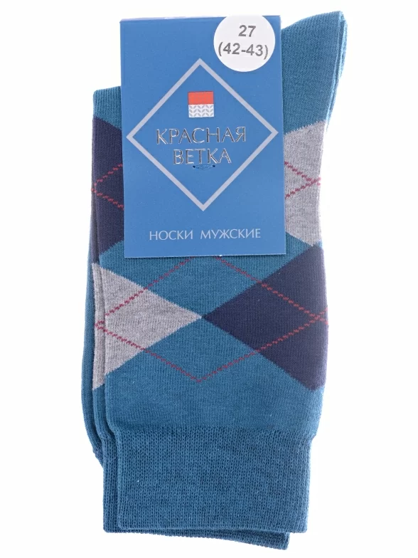 Круглогодичные средней длины мужские носки, цвет бирюзовый, классические, возможно бесшовные, принт (рисунок): клетка, геометрия, аргайл, с узором, состав: 62% хлопок, 20% полиамид, 14% полипропилен, 4% эластан, арт. С-1354. Производитель «КРАСНАЯ ВЕТКА» Россия под брендом «Красная ветка».
