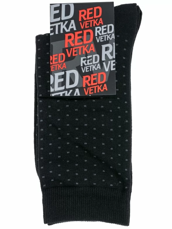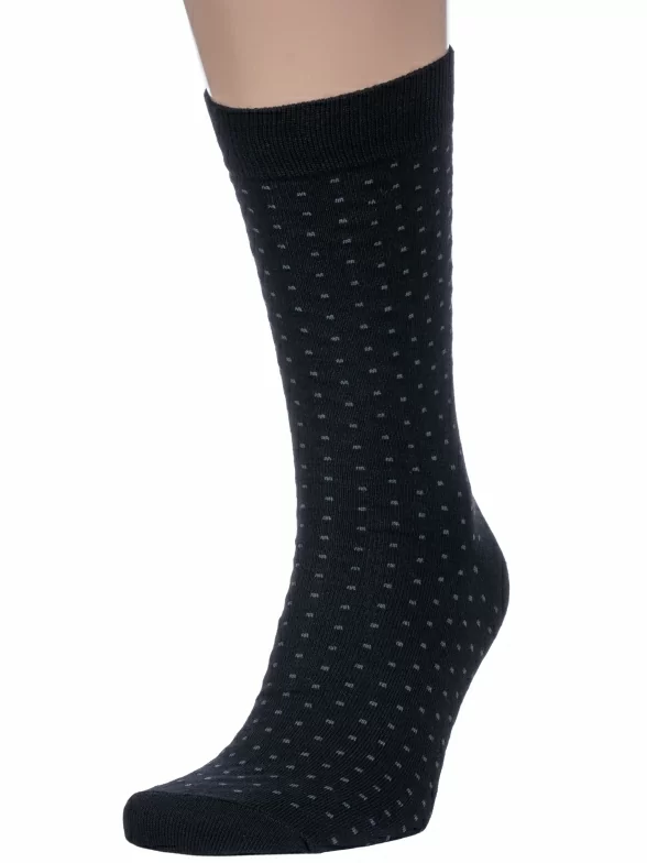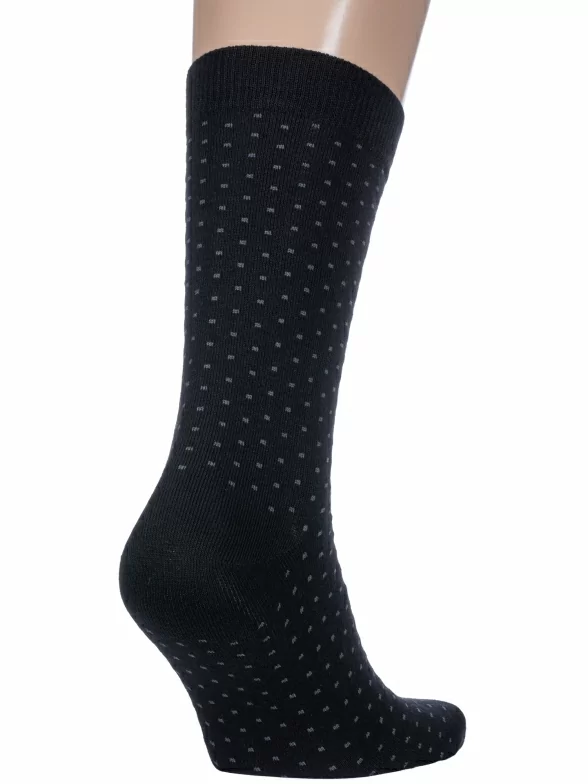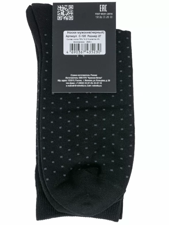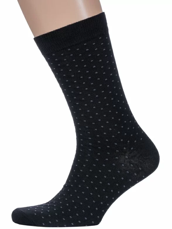 Круглогодичные средней длины мужские носки, цвет черный, классические, возможно бесшовные, принт (рисунок): мелкий принт, горох / точка, с узором, состав: 75% хлопок, 21% полиамид, 4% эластан, арт. С-120. Производитель «КРАСНАЯ ВЕТКА» Россия под брендом «Красная ветка».