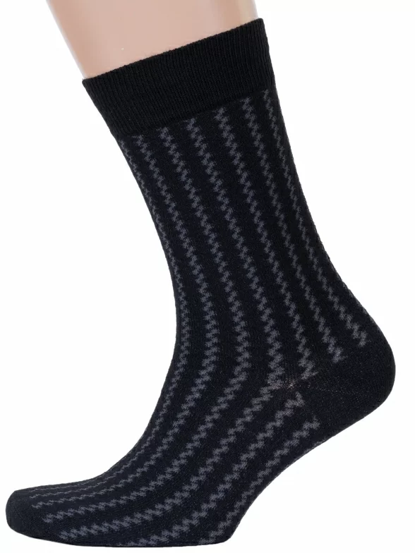 Круглогодичные средней длины мужские носки, цвет черный, повседневные, возможно бесшовные, принт (рисунок): полоски, зигзаг / молния, с узором, состав: 71% хлопок, 24% полиамид, 5% эластан, арт. С-1327. Производитель «КРАСНАЯ ВЕТКА» Россия под брендом «Красная ветка».