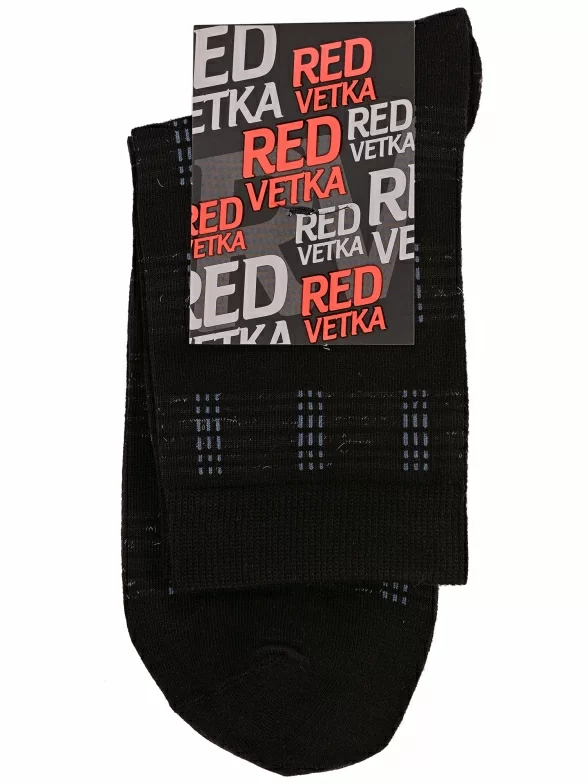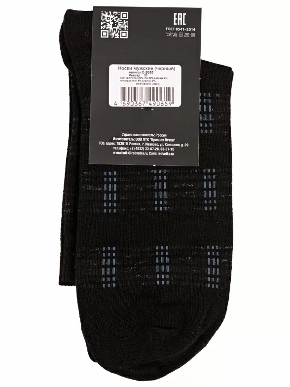 Круглогодичные укороченные мужские носки, цвет черный, классические, возможно бесшовные, принт (рисунок): полоски, с узором, состав: 60% хлопок, 22% полиамид, 9% вискоза, 5% полипропилен, 4% эластан, арт. С-2055. Производитель «КРАСНАЯ ВЕТКА» Россия под брендом «Красная ветка».