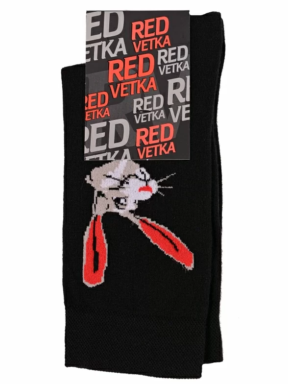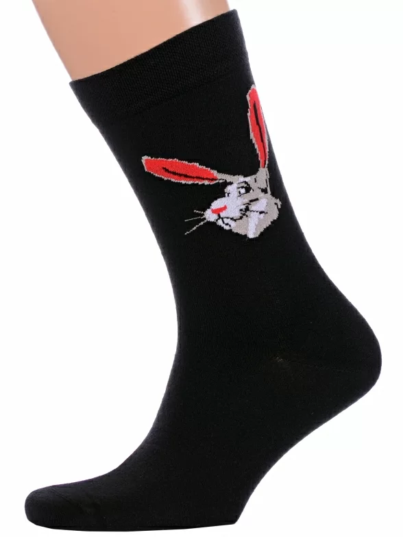 Круглогодичные средней длины мужские носки, цвет черный, повседневные, возможно бесшовные, принт (рисунок): животные, с узором, состав: 68% хлопок, 24% полиамид, 4% полипропилен, 4% эластан, арт. С-2057. Производитель «КРАСНАЯ ВЕТКА» Россия под брендом «Красная ветка».