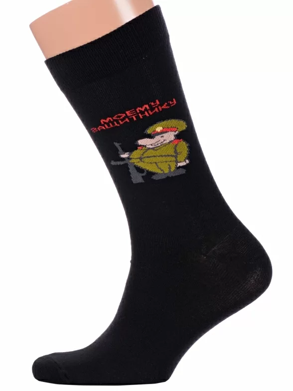 Круглогодичные средней длины мужские носки, цвет черный, повседневные, возможно бесшовные, принт (рисунок): надписи, с узором, состав: 72% хлопок, 21% полиамид, 4% эластан, 3% полипропилен, арт. С-2070. Производитель «КРАСНАЯ ВЕТКА» Россия под брендом «Красная ветка».