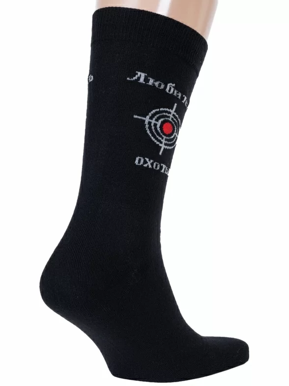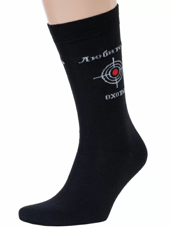 Круглогодичные средней длины мужские носки, цвет черный, повседневные, возможно бесшовные, принт (рисунок): надписи, с узором, состав: 74% хлопок, 20% полиамид, 6% эластан, арт. С-309. Производитель «КРАСНАЯ ВЕТКА» Россия под брендом «Красная ветка».
