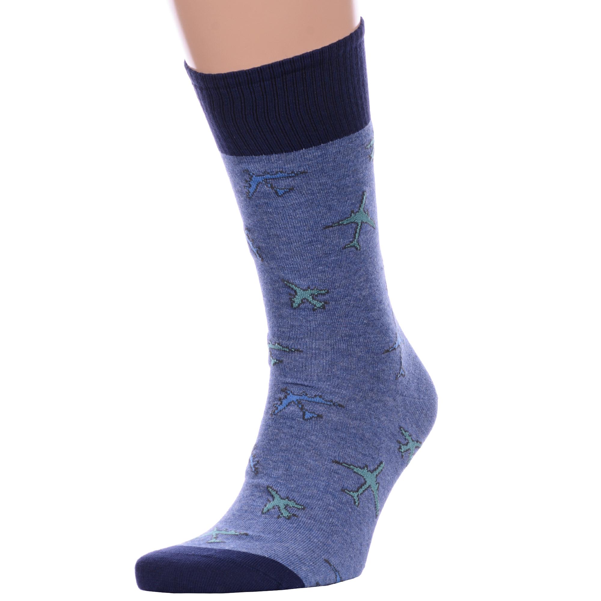 Мужские хлопковые носки "Красная ветка". Качественные носки с большим содержанием хлопка. Прочные и хорошо тянутся, благодаря входящим в состав полиамиду и эластану. Отлично сочетаются с повседневной одеждой. После многочисленных стирок сохраняют яркость цвета и не скатываются. Особенность модели - принт в виде самолетов.