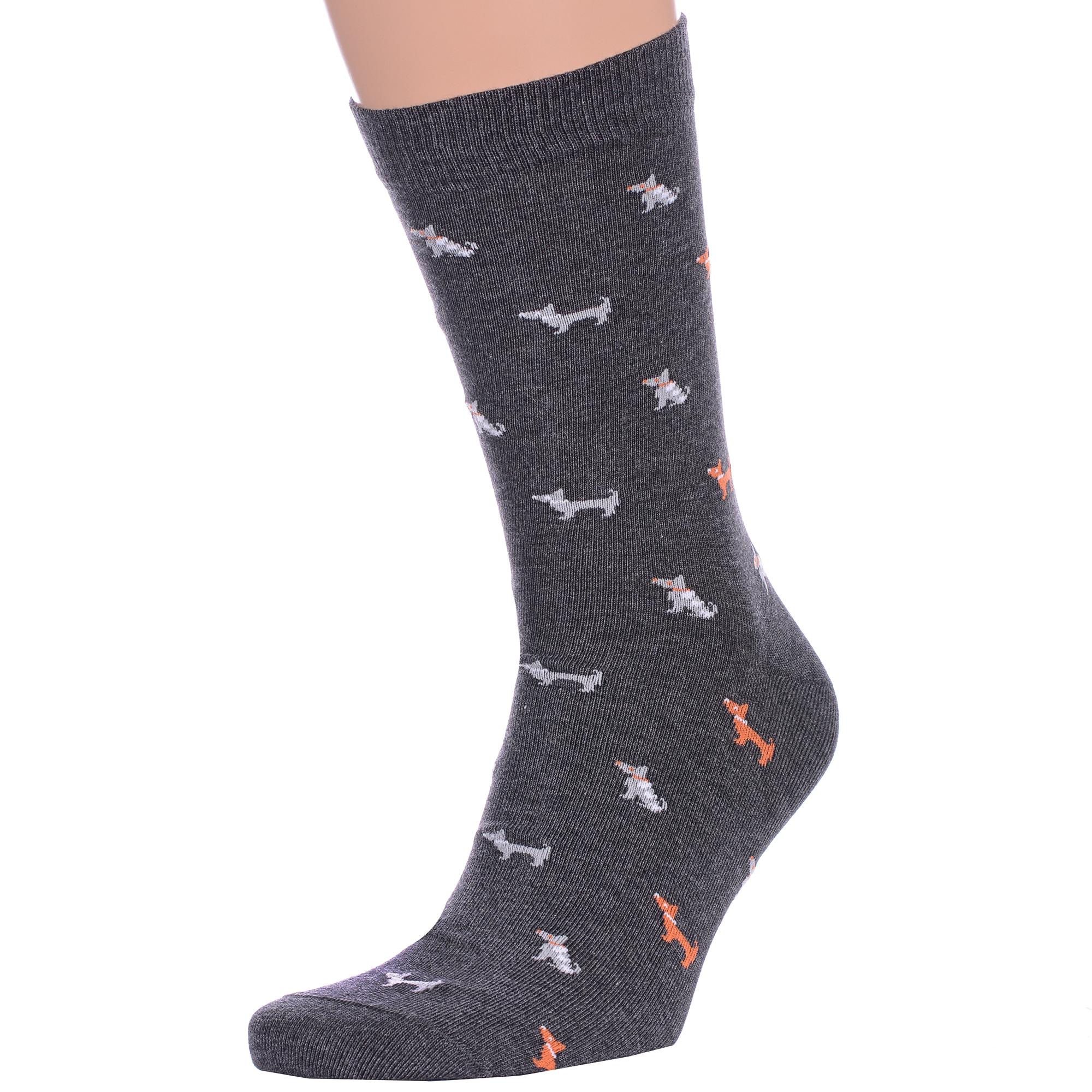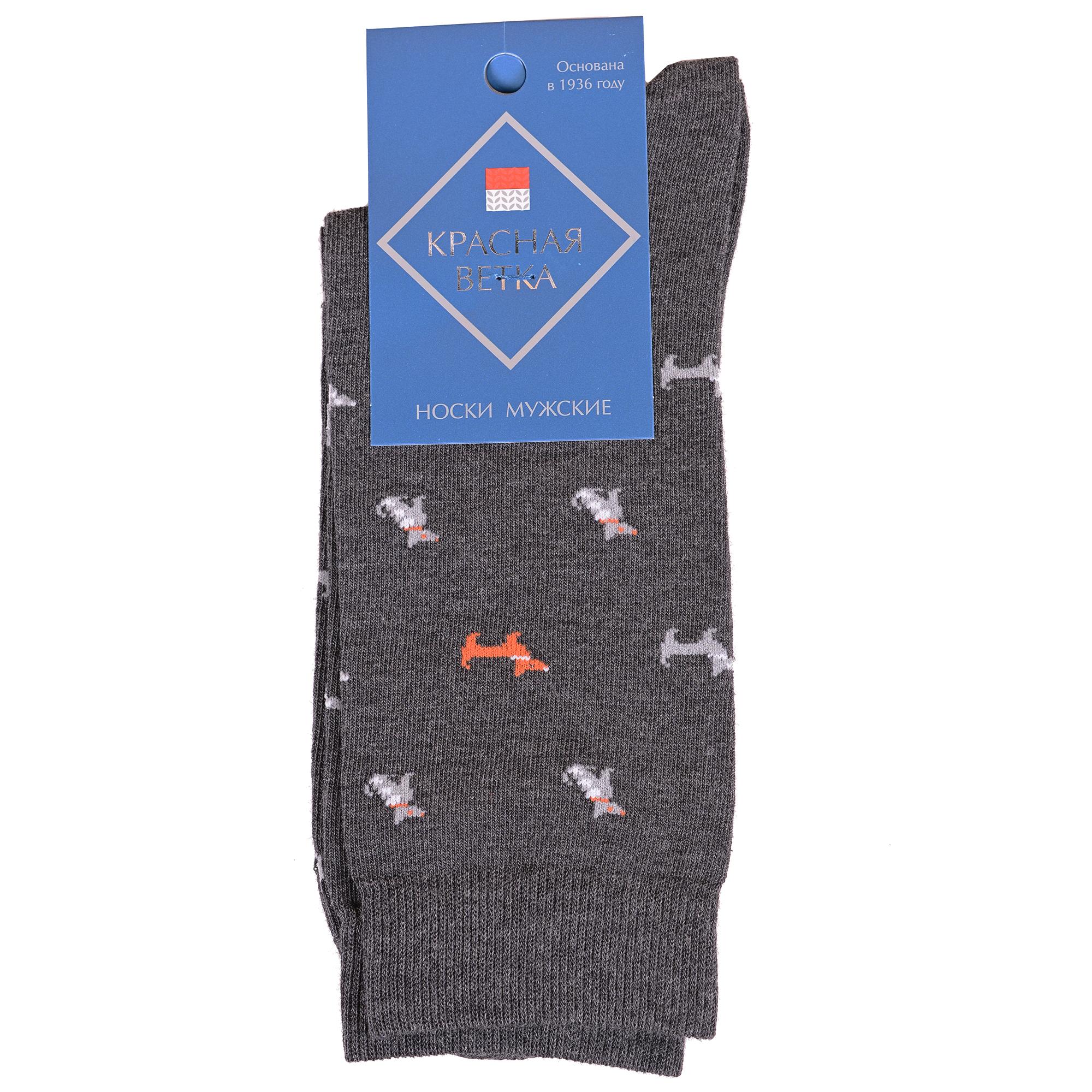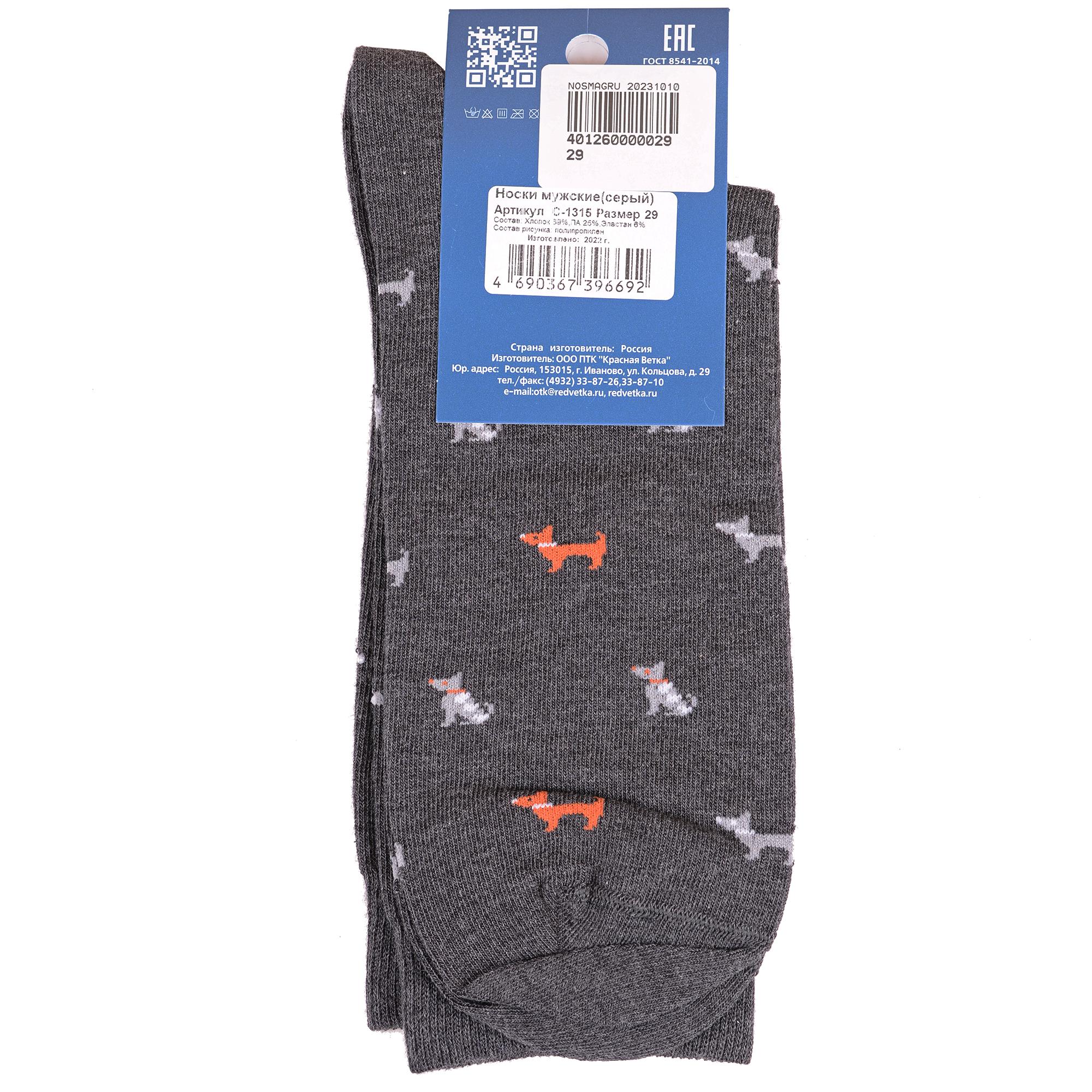 Круглогодичные средней длины мужские носки, цвет серый, с принтом, состав: 69% хлопок, 25% полиамид, 6% эластан, арт. С-1315. Производитель «КРАСНАЯ ВЕТКА» Россия под брендом «Красная ветка».