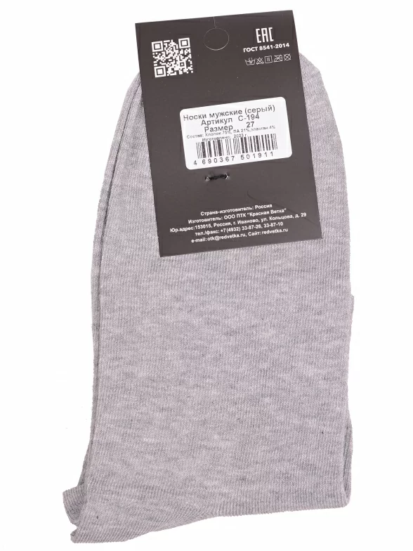 Мужские спортивные носки "Красная ветка", С-194, СЕРЫЕ