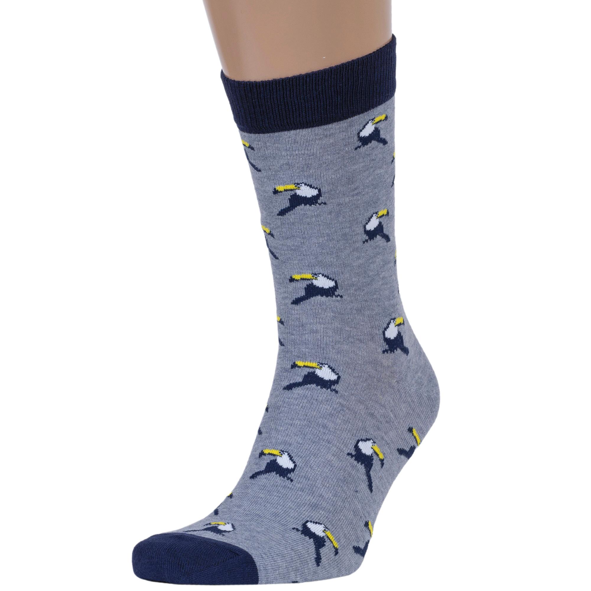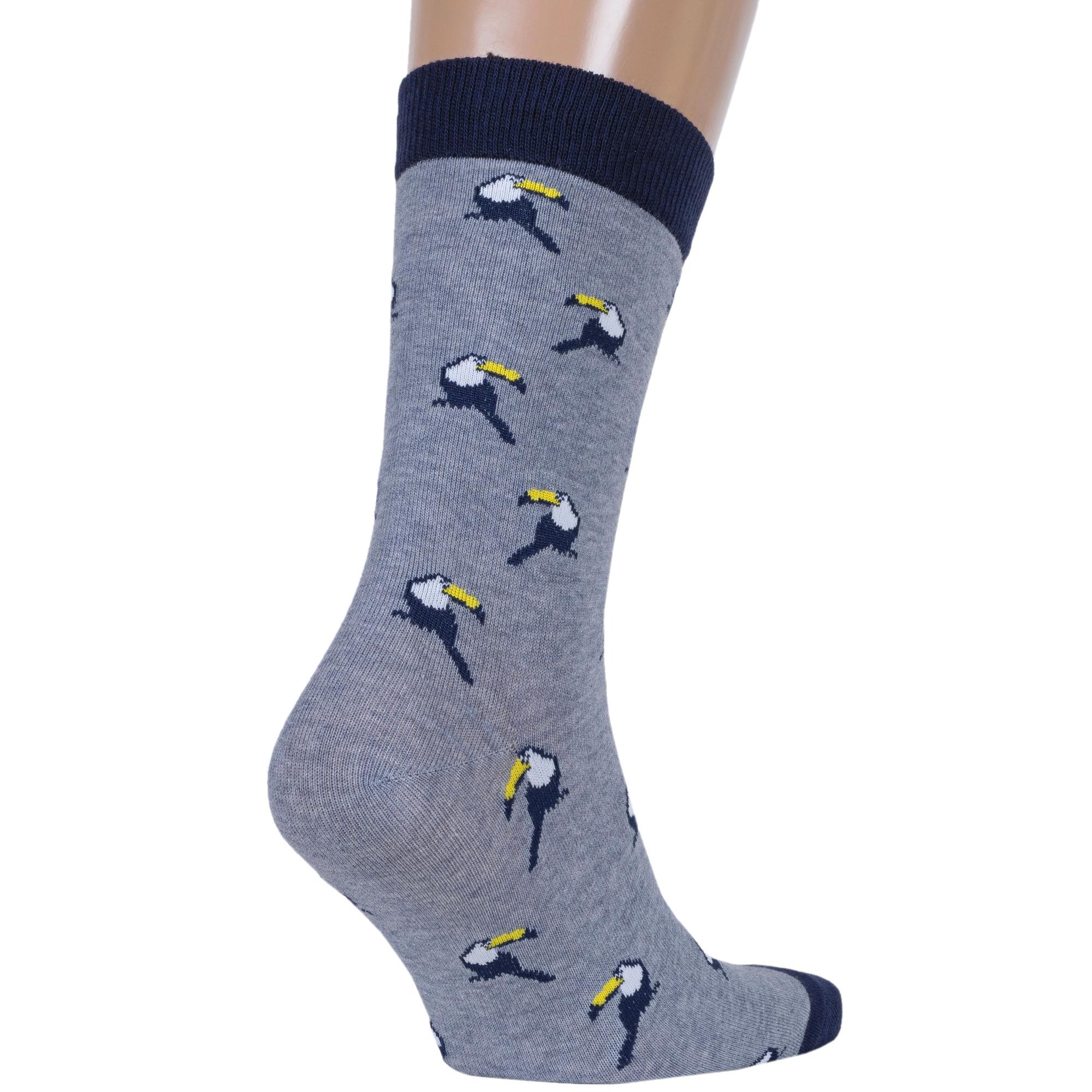 Мужские хлопковые носки "Красная ветка". Качественные носки с большим содержанием хлопка. Прочные и хорошо тянутся, благодаря входящим в состав полиамиду и эластану. Отлично сочетаются с повседневной одеждой. После многочисленных стирок сохраняют яркость цвета и не скатываются. Особенность модели - узор с туканами.