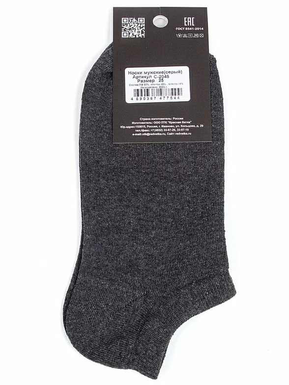Межсезонные или летние ультракороткие мужские носки, цвет серый, классические, возможно бесшовные, принт (рисунок): однотонный, без рисунков/узоров, состав: 50% полиэстер, 46% хлопок, 4% эластан, арт. С-2048. Производитель «КРАСНАЯ ВЕТКА» Россия под брендом «Красная ветка».