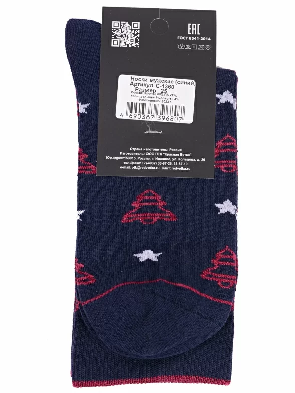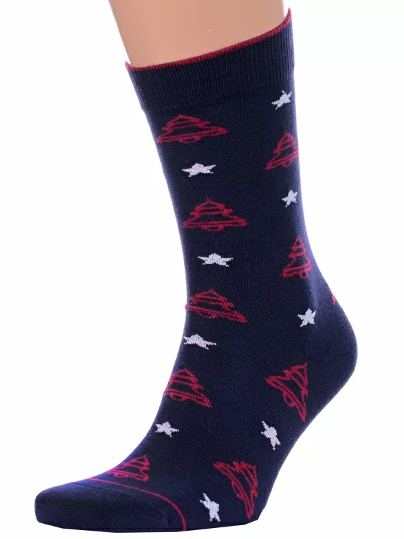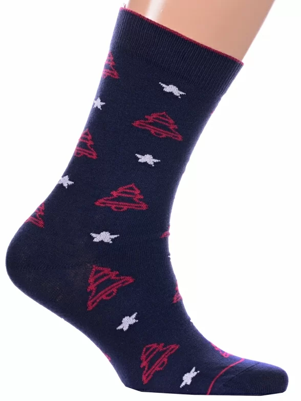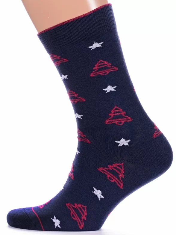 Круглогодичные средней длины мужские носки, цвет темно-синий, повседневные, возможно бесшовные, принт (рисунок): новый год, звезды / небо, с узором, состав: 68% хлопок, 21% полиамид, 7% полипропилен, 4% эластан, арт. С-1360. Производитель «КРАСНАЯ ВЕТКА» Россия под брендом «Красная ветка».