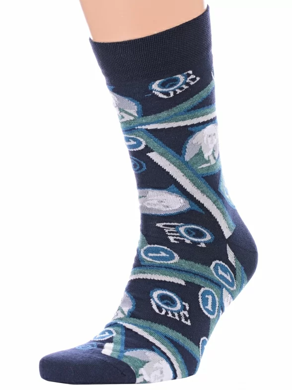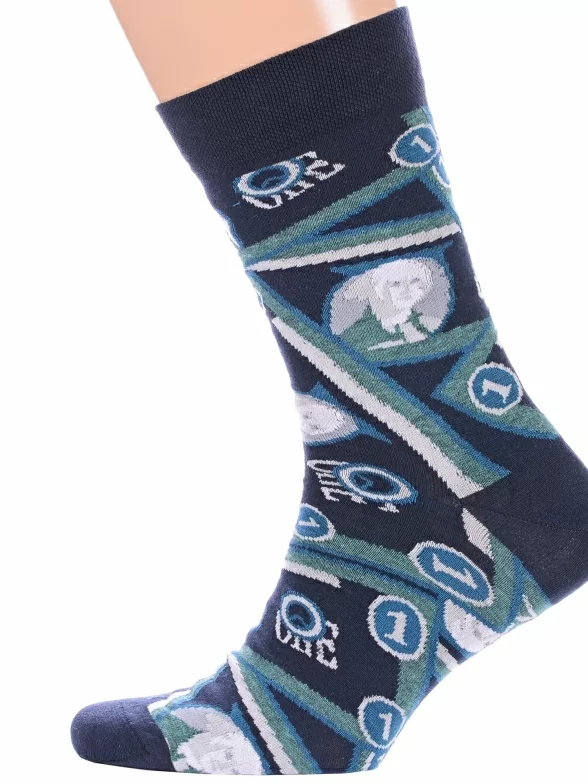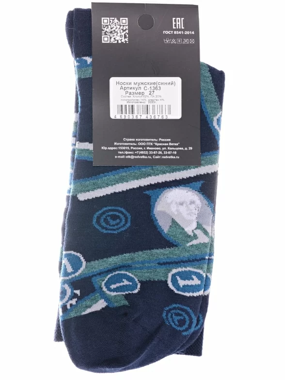 Круглогодичные средней длины мужские носки, цвет темно-синий, повседневные, возможно бесшовные, принт (рисунок): надписи, люди, с узором, крупные контрастные рисунки, состав: 62% хлопок, 20% полиамид, 14% полипропилен, 4% эластан, арт. С-1363. Производитель «КРАСНАЯ ВЕТКА» Россия под брендом «Красная ветка».