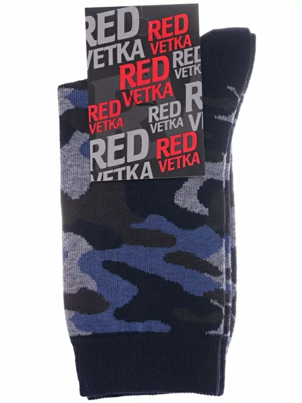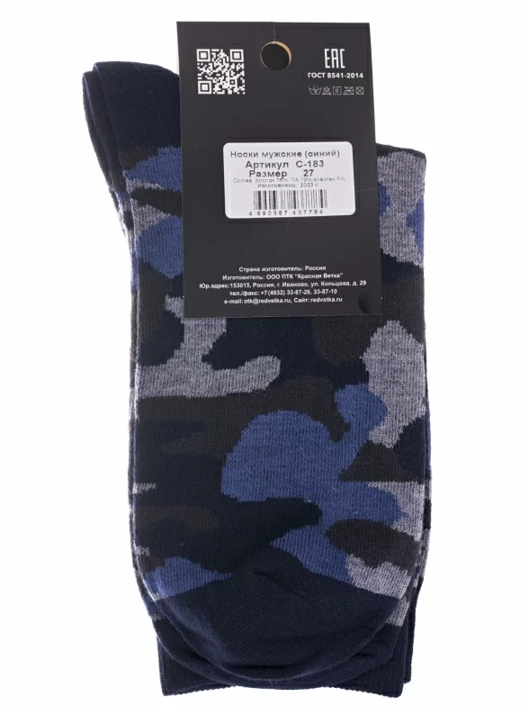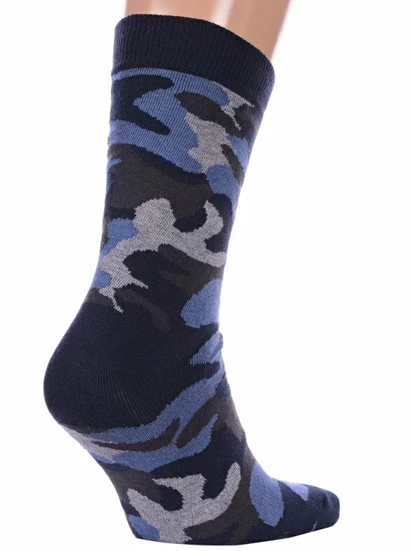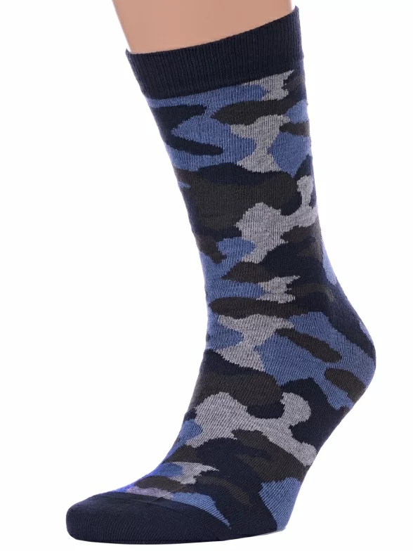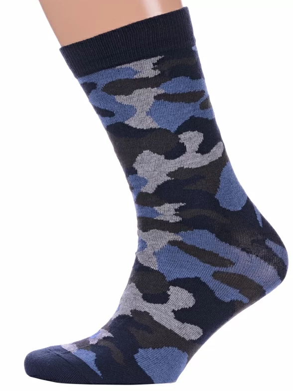 Круглогодичные средней длины мужские носки, цвет синий, повседневные, возможно бесшовные, принт (рисунок): милитари, с узором, состав: 76% хлопок, 19% полиамид, 5% эластан, арт. С-183. Производитель «КРАСНАЯ ВЕТКА» Россия под брендом «Красная ветка».