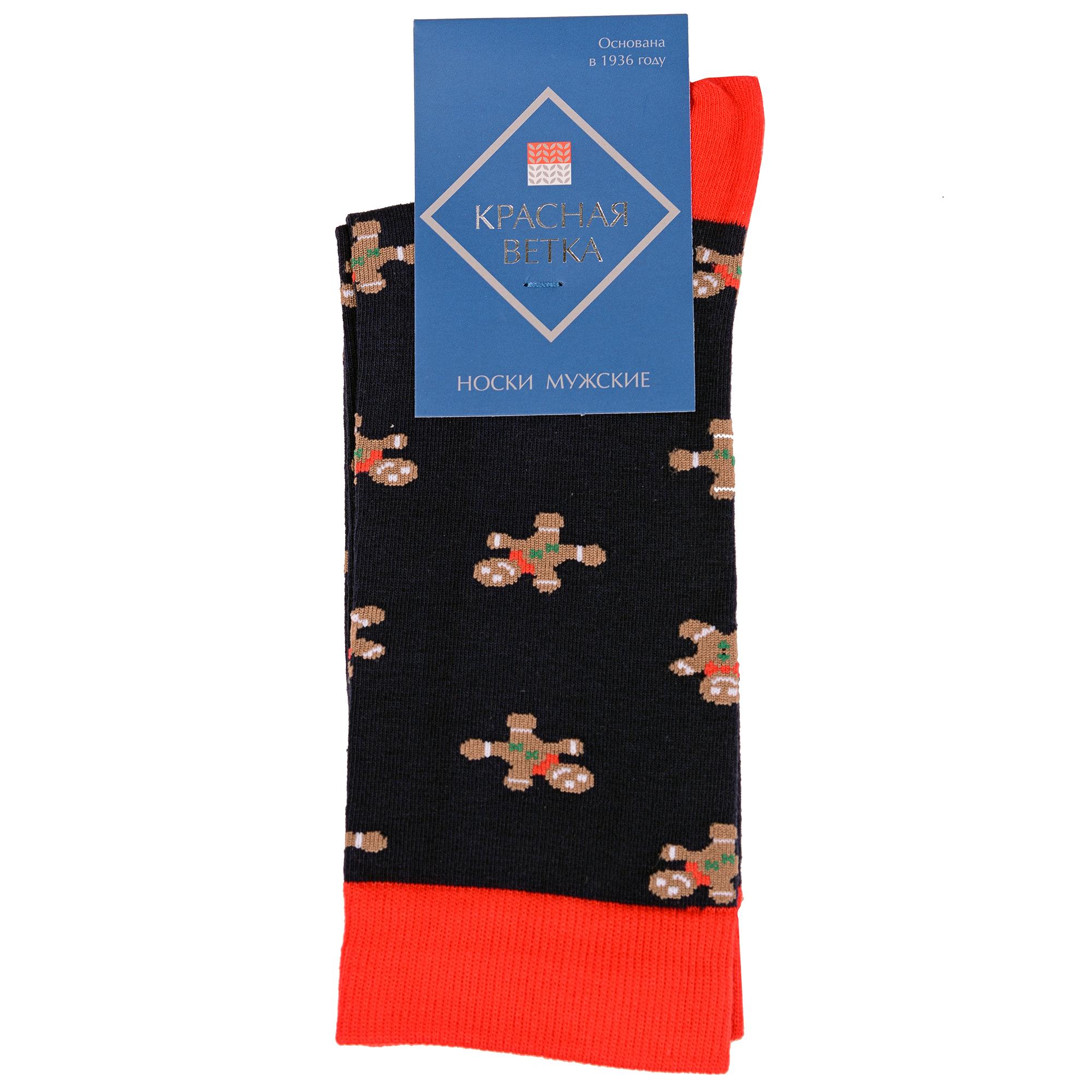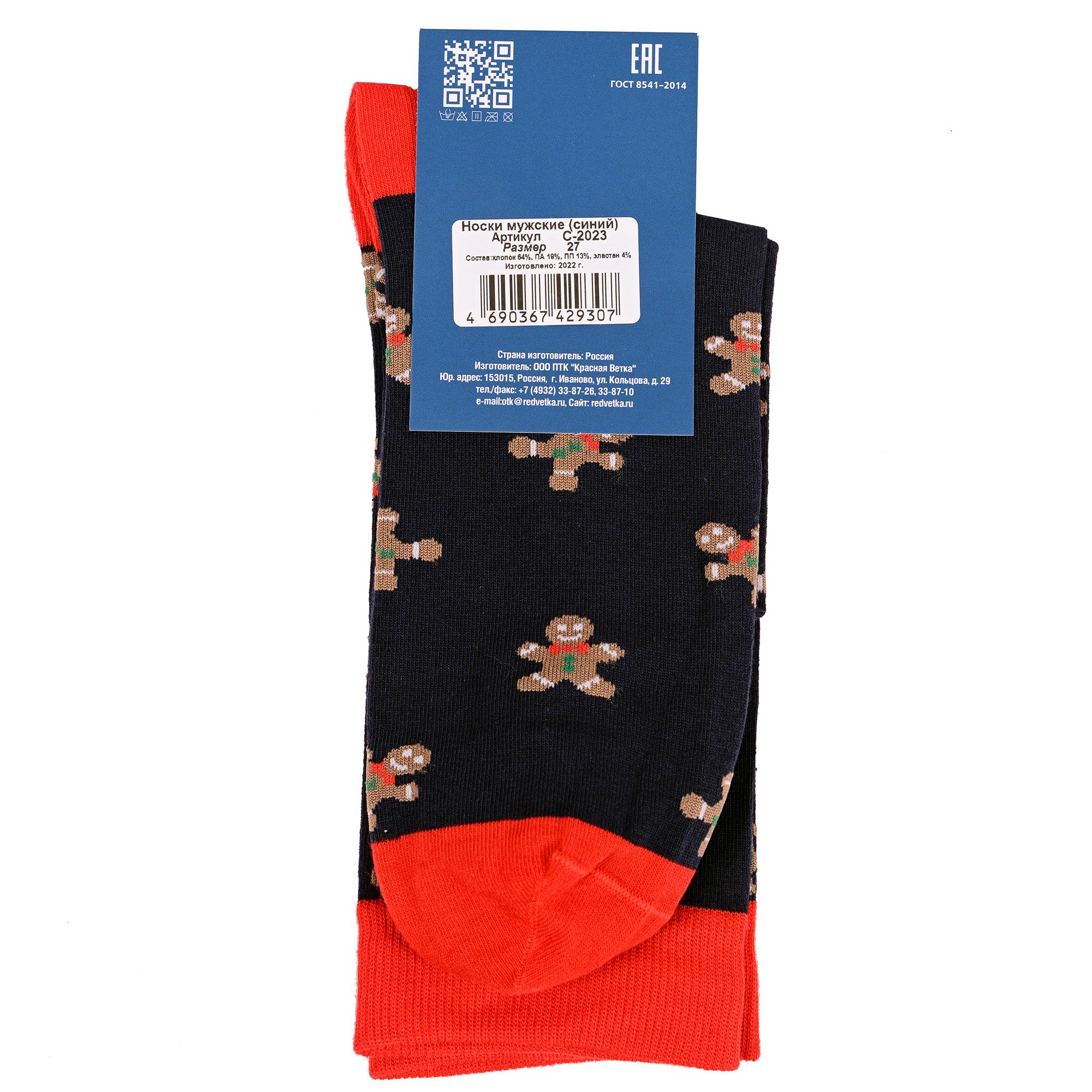 Круглогодичные средней длины мужские носки, цвет синий, повседневные, возможно бесшовные, принт (рисунок): контрастные пятка / мысок / резинка, еда и напитки, с узором, крупные контрастные рисунки, состав: 64% хлопок, 19% полиамид, 13% полипропилен, 4% эластан, арт. С-2023. Производитель «КРАСНАЯ ВЕТКА» Россия под брендом «Красная ветка».