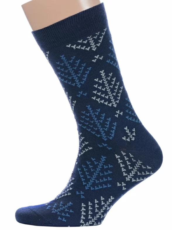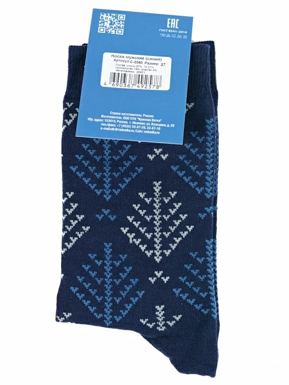 Круглогодичные средней длины мужские носки, цвет синий, повседневные, возможно бесшовные, принт (рисунок): норвежский жаккард, геометрия, с узором, состав: 57% хлопок, 21% полиамид, 18% полипропилен, 4% эластан, арт. С-2060. Производитель «КРАСНАЯ ВЕТКА» Россия под брендом «Красная ветка».