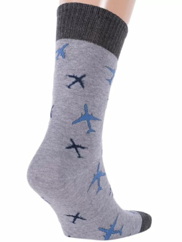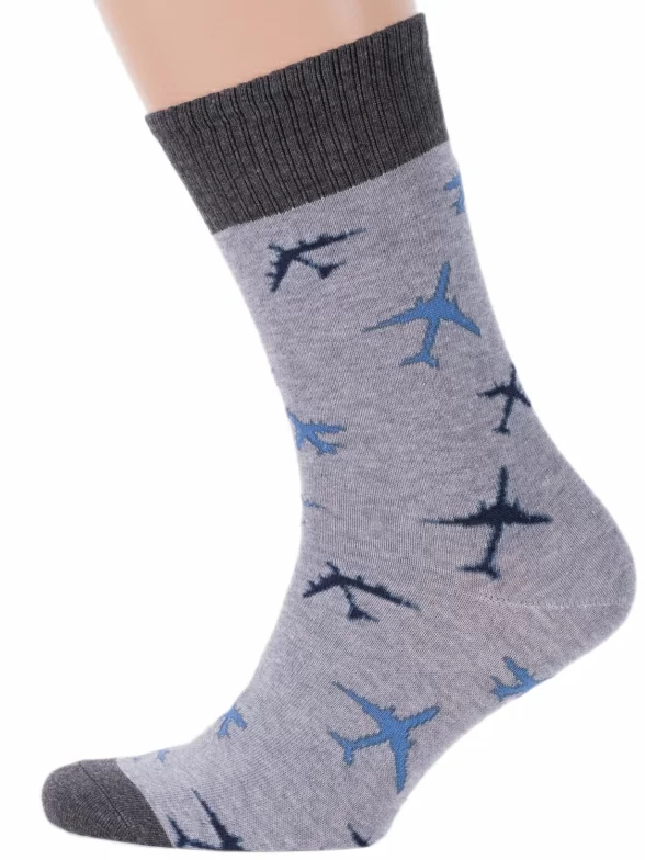 Круглогодичные средней длины мужские носки, цвет серый, повседневные, возможно бесшовные, принт (рисунок): транспорт, путешествия, с узором, состав: 75% хлопок, 20% полиамид, 5% эластан, арт. С-1301. Производитель «КРАСНАЯ ВЕТКА» Россия под брендом «Красная ветка».