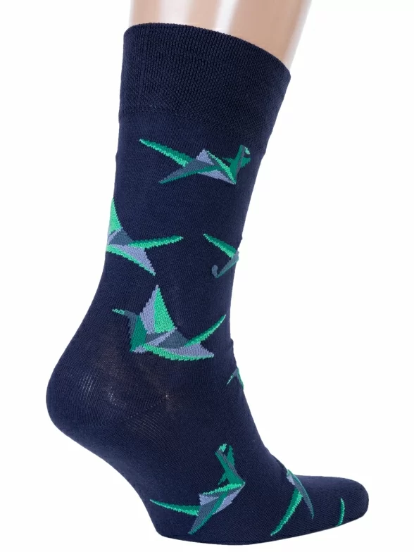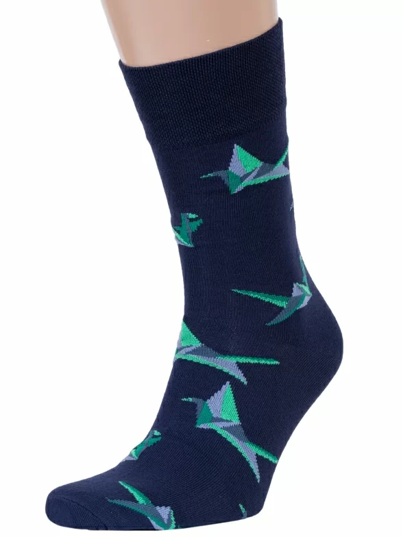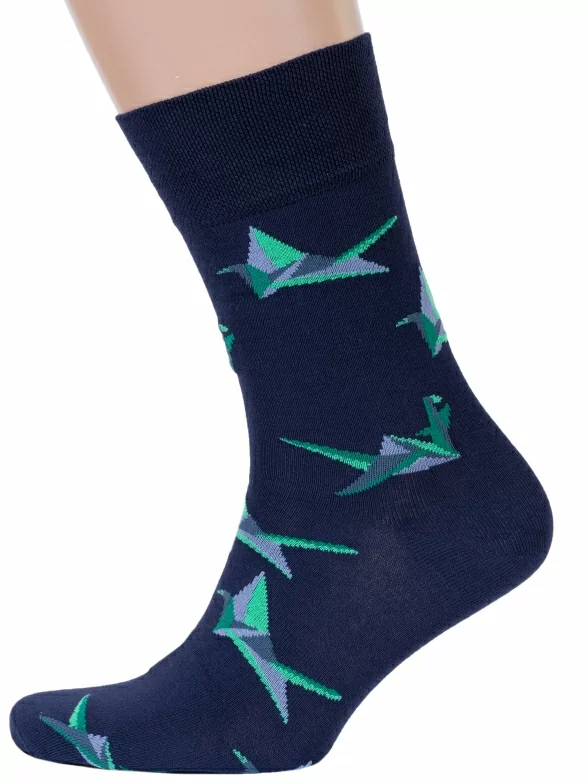 Мужские хлопковые носки "Красная ветка". Качественные носки с большим содержанием хлопка. Прочные и хорошо тянутся, благодаря входящим в состав полиамиду и эластану. Отлично сочетаются с повседневной одеждой. После многочисленных стирок сохраняют яркость цвета и не скатываются. Особенность модели - абстрактный узор в виде геометрических птиц.