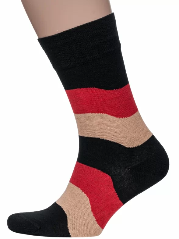 Яркие мужские носки в широкую контрастную полоску. Модель классической длины на удобной резинке. Носки сделаны из качественного трикотажа с содержанием хлопка 80 процентов. Оптимальная плотность обеспечивает высокий уровень комфорта!