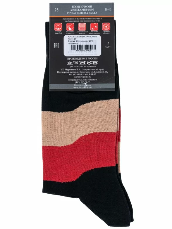 Мужские носки LORENZline, Е32, БЕЖЕВО-КРАСНЫЕ