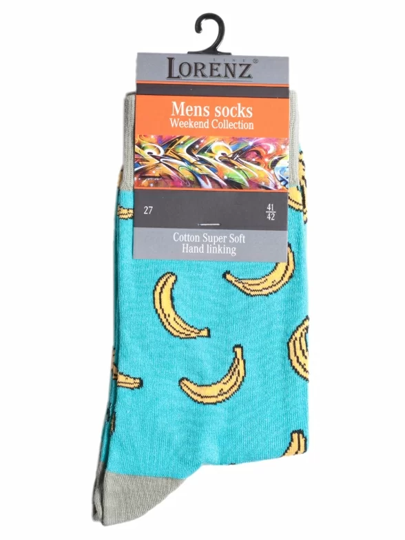 Яркие мужские носки с банановым принтом связаны с применением бесшовной технологии. Модель классической длины на удобной резинке. Носки сделаны из качественного трикотажа с содержанием хлопка 85 процентов. Оптимальная плотность обеспечивает высокий уровень комфорта!