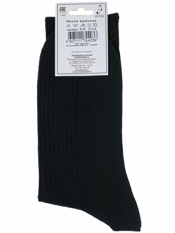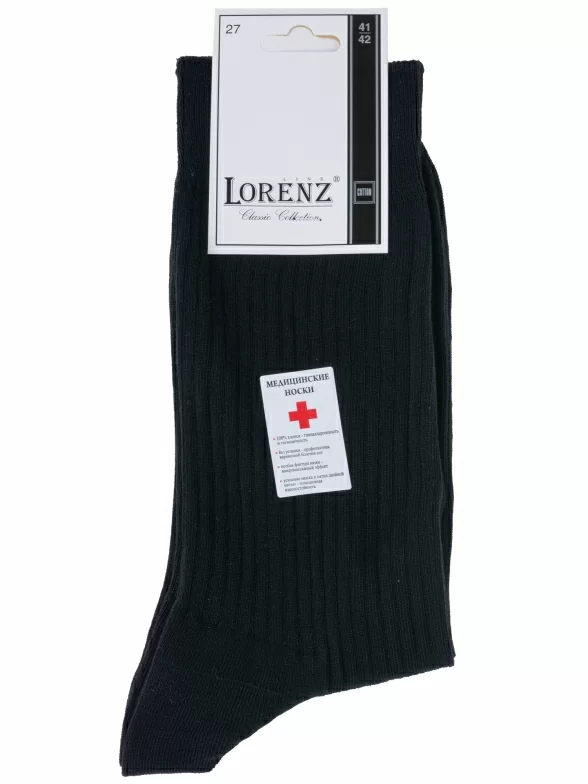 Мужские медицинские носки из 100% хлопка LORENZline, К22, ЧЕРНЫЕ