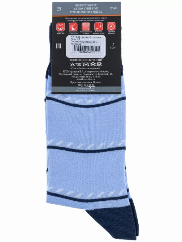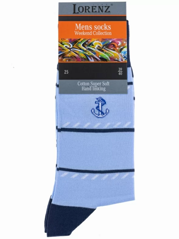 Мужские носки LORENZline, Е25, ГОЛУБЫЕ с якорем