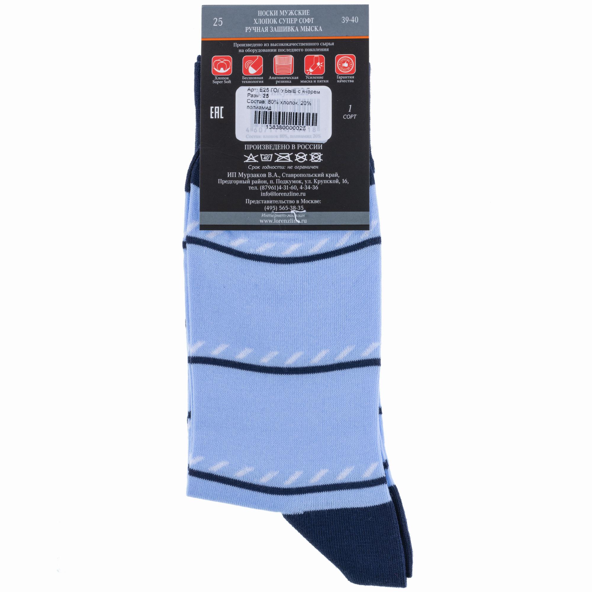 Мужские носки LORENZline Е25, ГОЛУБЫЕ с якорем