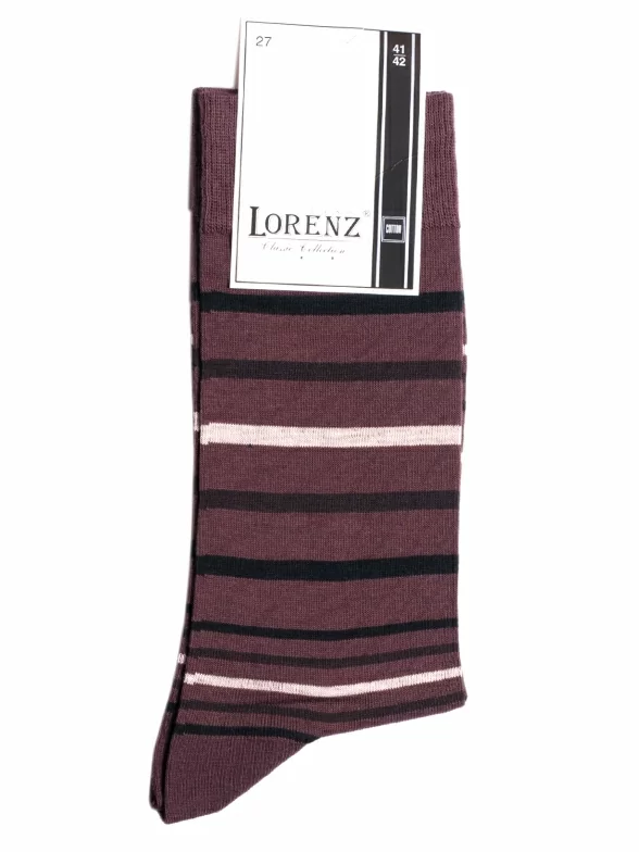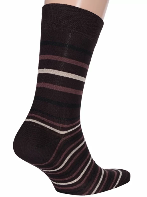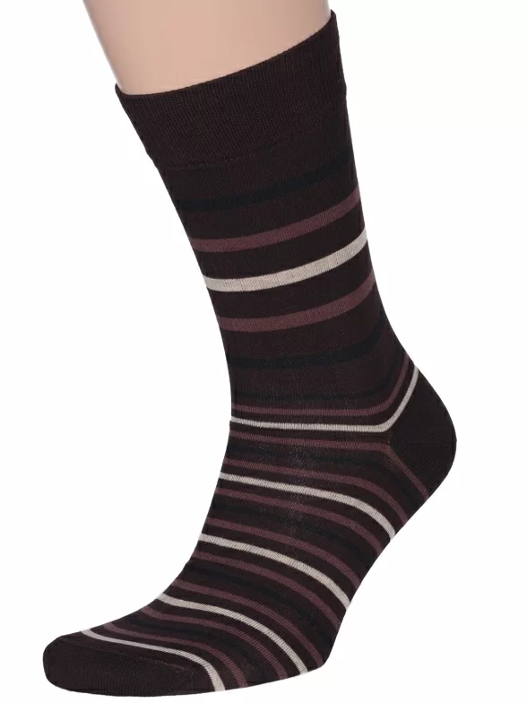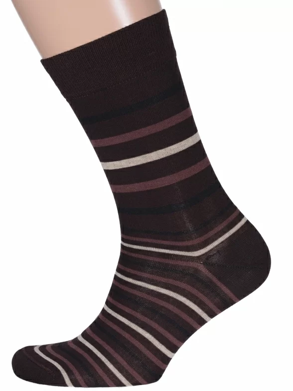 Круглогодичные средней длины мужские носки, цвет коричневый, классические, шов кеттельный (бесшовная технология), принт (рисунок): полоски, с узором, состав: 80% хлопок, 20% полиамид, арт. К14. Производитель «ИП Мурзаков В.А., Ставропольский край, Россия» под брендом «Lorenzline».