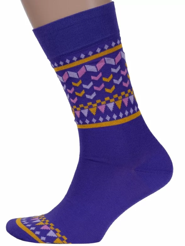 Сочный благородный цвет и контрастные орнаменты – такое сочетание делает эти носки столь необычными. Они сделаны из приятного трикотажа и очень удобны.