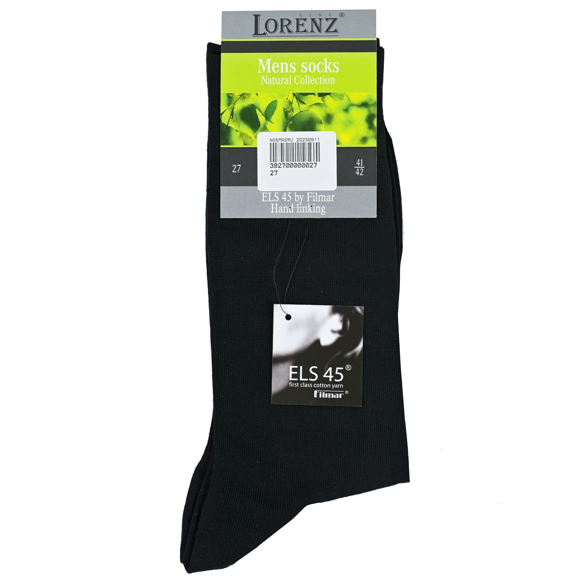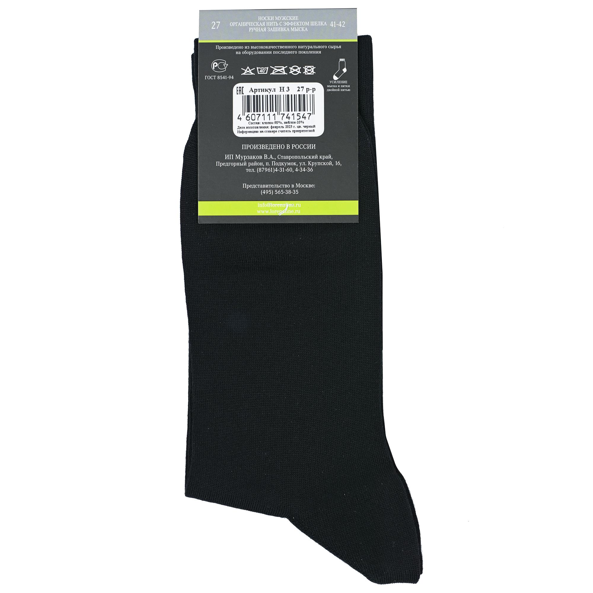 Круглогодичные средней длины мужские носки, цвет черный, классические, шов кеттельный (бесшовная технология), принт (рисунок): однотонный, без рисунков/узоров, состав: 90% хлопок, 10% нейлон, арт. Н3. Производитель «ИП Мурзаков В.А., Ставропольский край, Россия» под брендом «Lorenzline».
