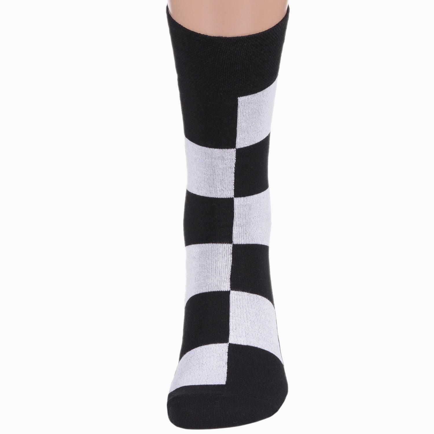 Круглогодичные средней длины мужские носки, цвет черный + белый-многоцветные (мультиколор), классические, шов обычный (не бесшовные), принт (рисунок): клетка, геометрия, с узором, состав: 82% хлопок, 15% полиамид, 3% эластан, арт. Nm-45. Производитель «ИП Рыбалкин В.С., Московская область, г. Щелково» под брендом «Msclub».