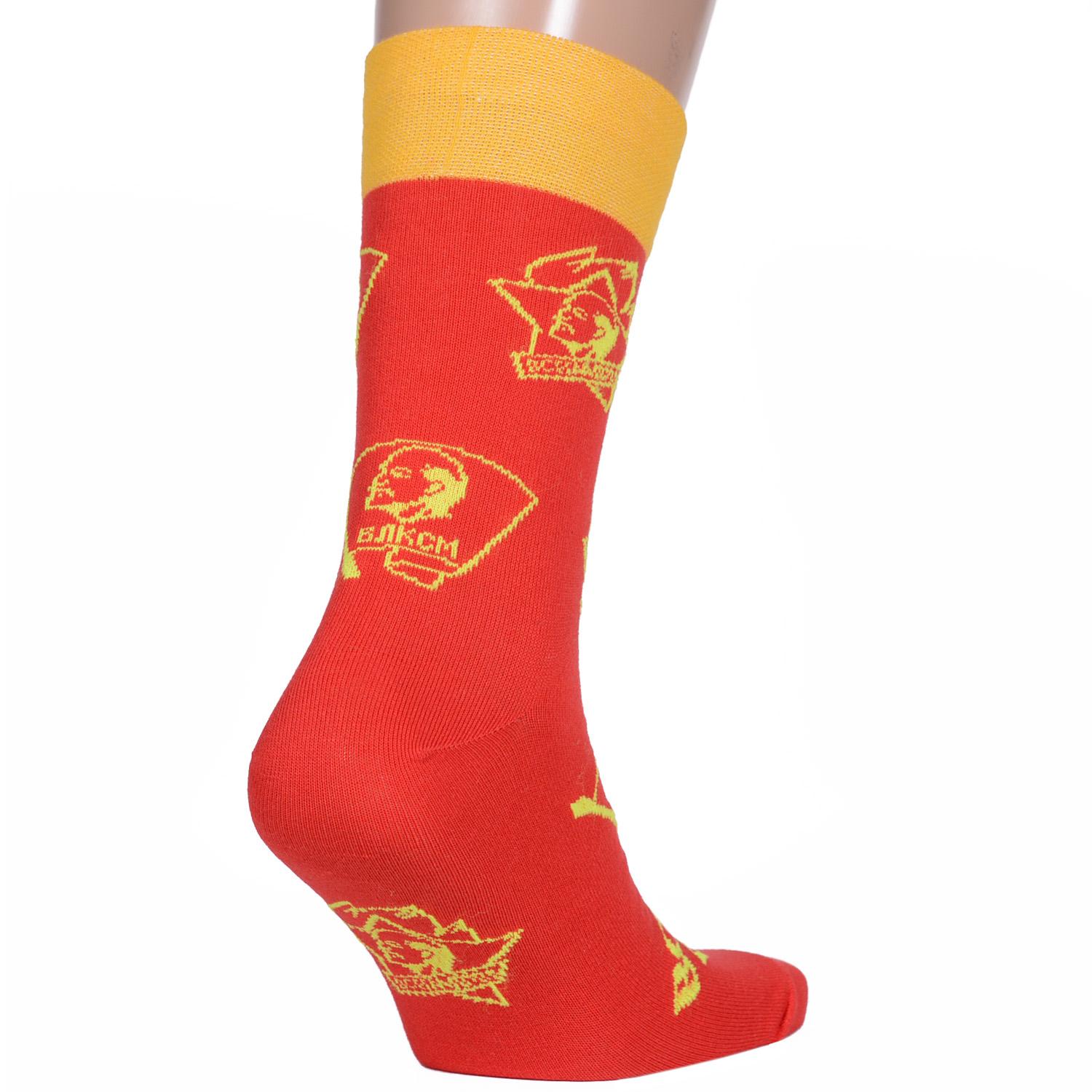 Круглогодичные средней длины мужские носки, цвет красный-многоцветные (мультиколор), повседневные, шов обычный (не бесшовные), принт (рисунок): крупные контрастные рисунки, с узором, надписи, ностальгия, состав: 82% хлопок, 15% полиамид, 3% эластан, арт. ВиМ-63Э. Производитель «ИП Рыбалкин В.С., Московская область, г. Щелково» под брендом «Msclub».