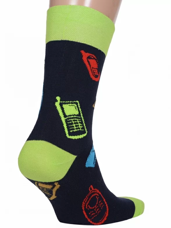 Круглогодичные средней длины мужские носки, цвет темно-синий, повседневные, шов обычный (не бесшовные), принт (рисунок): техника, работа / офис, ностальгия, крупные контрастные рисунки, состав: 82% хлопок, 15% полиамид, 3% эластан, арт. ВиМ-56Э. Производитель «ИП Рыбалкин В.С., Московская область, г. Щелково» под брендом «Msclub».