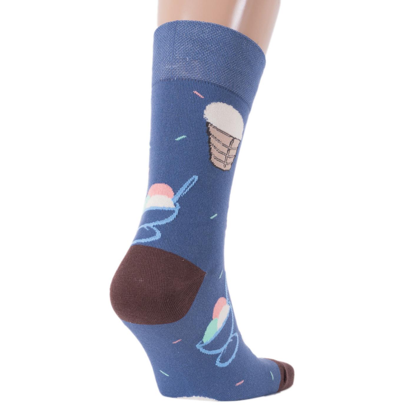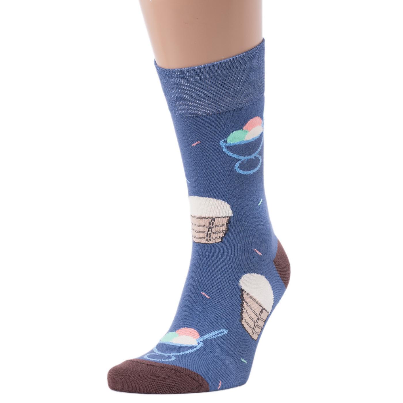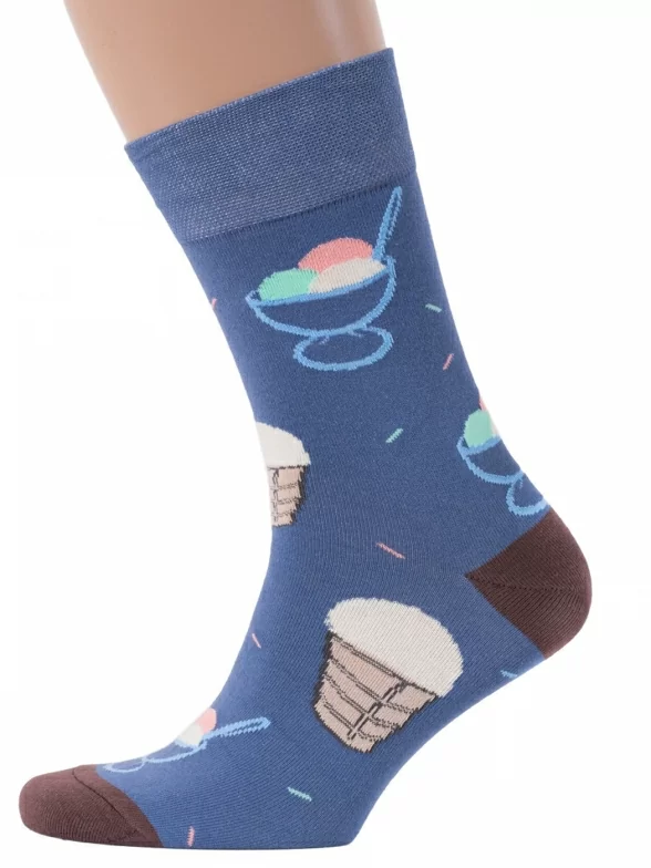 Круглогодичные средней длины мужские носки, цвет синий-многоцветные (мультиколор), повседневные, шов обычный (не бесшовные), принт (рисунок): ностальгия, еда и напитки, с узором, крупные контрастные рисунки, состав: 82% хлопок, 15% полиамид, 3% эластан, арт. NM-84. Производитель «ИП Рыбалкин В.С., Московская область, г. Щелково» под брендом «Msclub».