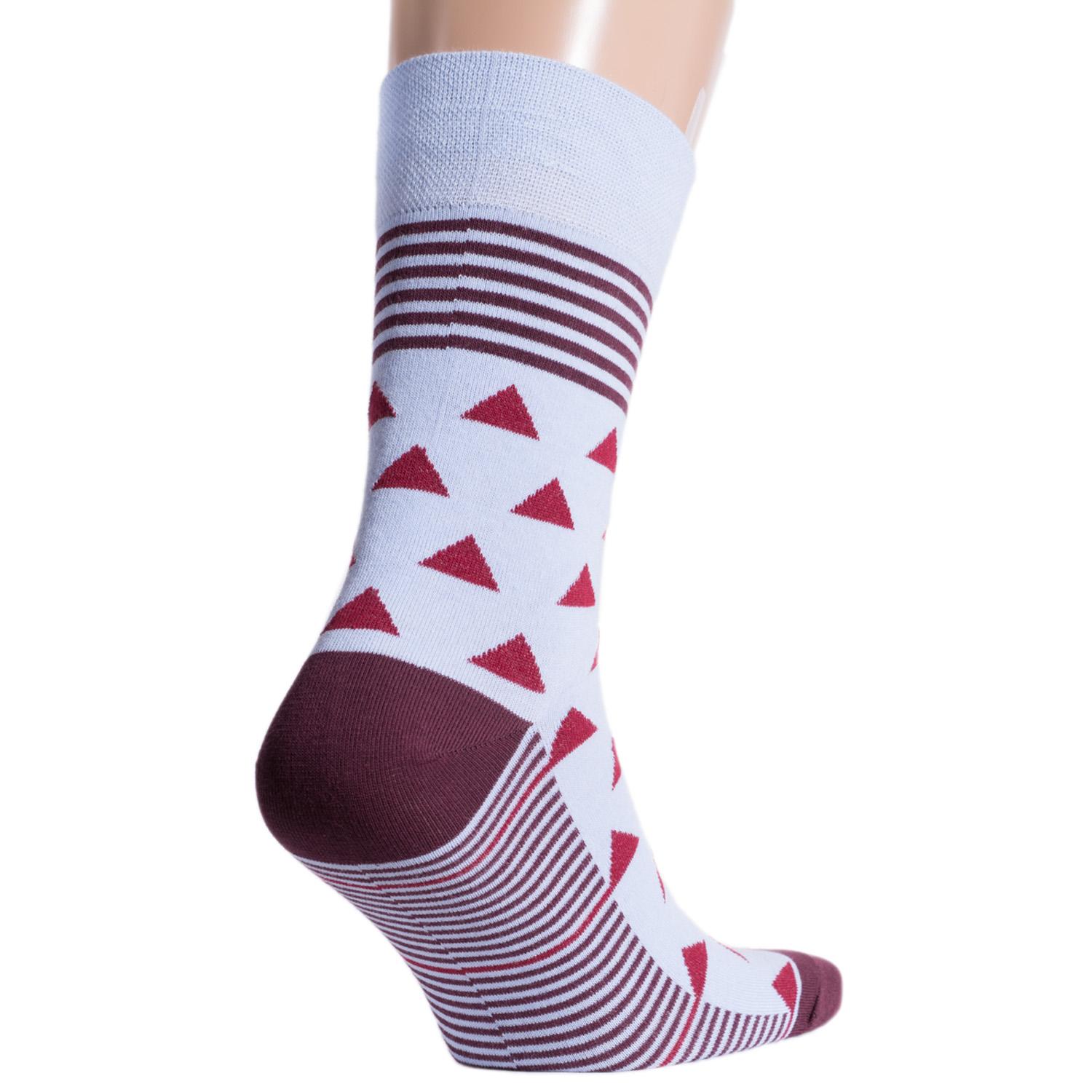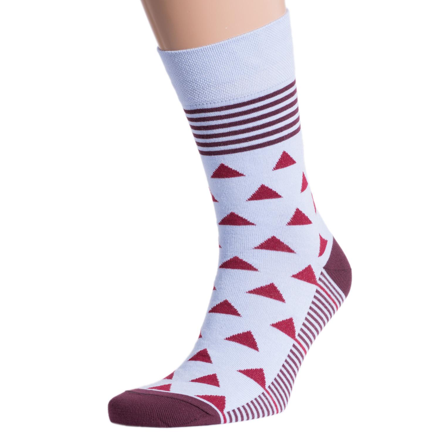 Круглогодичные средней длины мужские носки, цвет голубой-многоцветные (мультиколор), классические, шов обычный (не бесшовные), принт (рисунок): геометрия, состав: 82% хлопок, 15% полиамид, 3% эластан, арт. NM-93. Производитель «ИП Рыбалкин В.С., Московская область, г. Щелково» под брендом «Msclub».