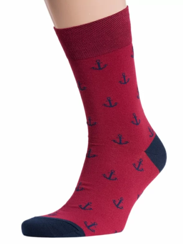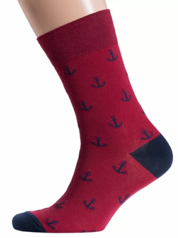 Круглогодичные средней длины мужские носки, цвет красный-бордовый, повседневные, шов обычный (не бесшовные), принт (рисунок): море, мелкий принт, с узором, состав: 82% хлопок, 15% полиамид, 3% эластан, арт. NM-91. Производитель «ИП Рыбалкин В.С., Московская область, г. Щелково» под брендом «Msclub».