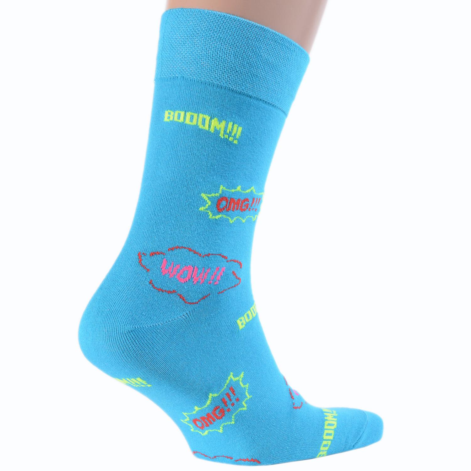 Круглогодичные средней длины мужские носки, цвет голубой, повседневные, шов обычный (не бесшовные), принт (рисунок): крупные контрастные рисунки, с узором, люди, надписи, поп-культура, состав: 82% хлопок, 15% полиамид, 3% эластан, арт. Nm-189. Производитель «ИП Рыбалкин В.С., Московская область, г. Щелково» под брендом «Msclub».