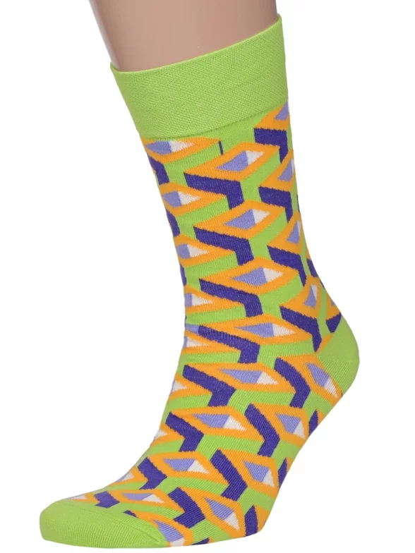 Круглогодичные средней длины мужские носки, цвет многоцветные (мультиколор), повседневные, шов обычный (не бесшовные), принт (рисунок): геометрия, с узором, крупные контрастные рисунки, состав: 82% хлопок, 15% полиамид, 3% эластан, арт. Nm-269. Производитель «ИП Рыбалкин В.С., Московская область, г. Щелково» под брендом «Msclub».