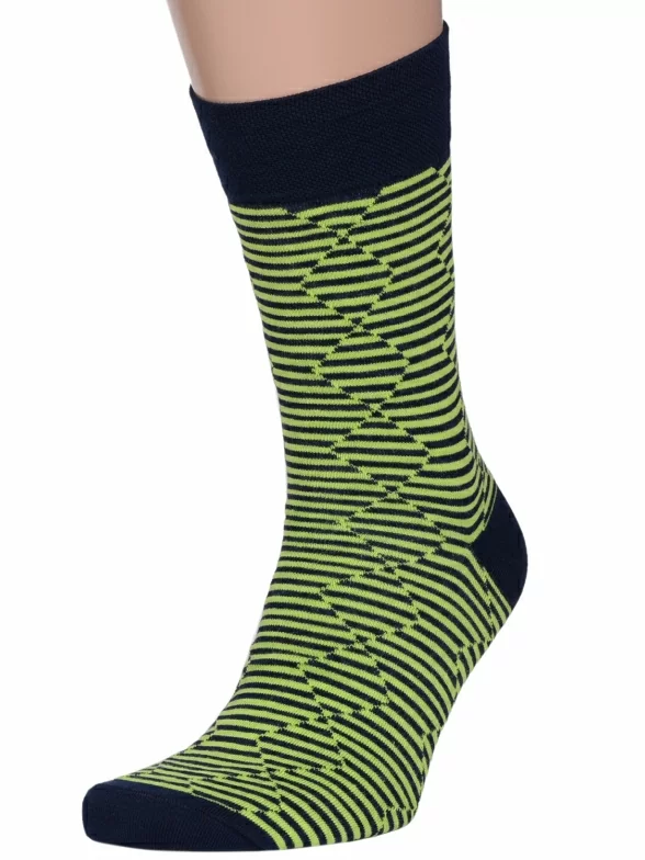 Круглогодичные средней длины мужские носки, цвет салатовый, повседневные, шов обычный (не бесшовные), принт (рисунок): геометрия, с узором, состав: 82% хлопок, 15% полиамид, 3% эластан, арт. Nm-267. Производитель «ИП Рыбалкин В.С., Московская область, г. Щелково» под брендом «Msclub».