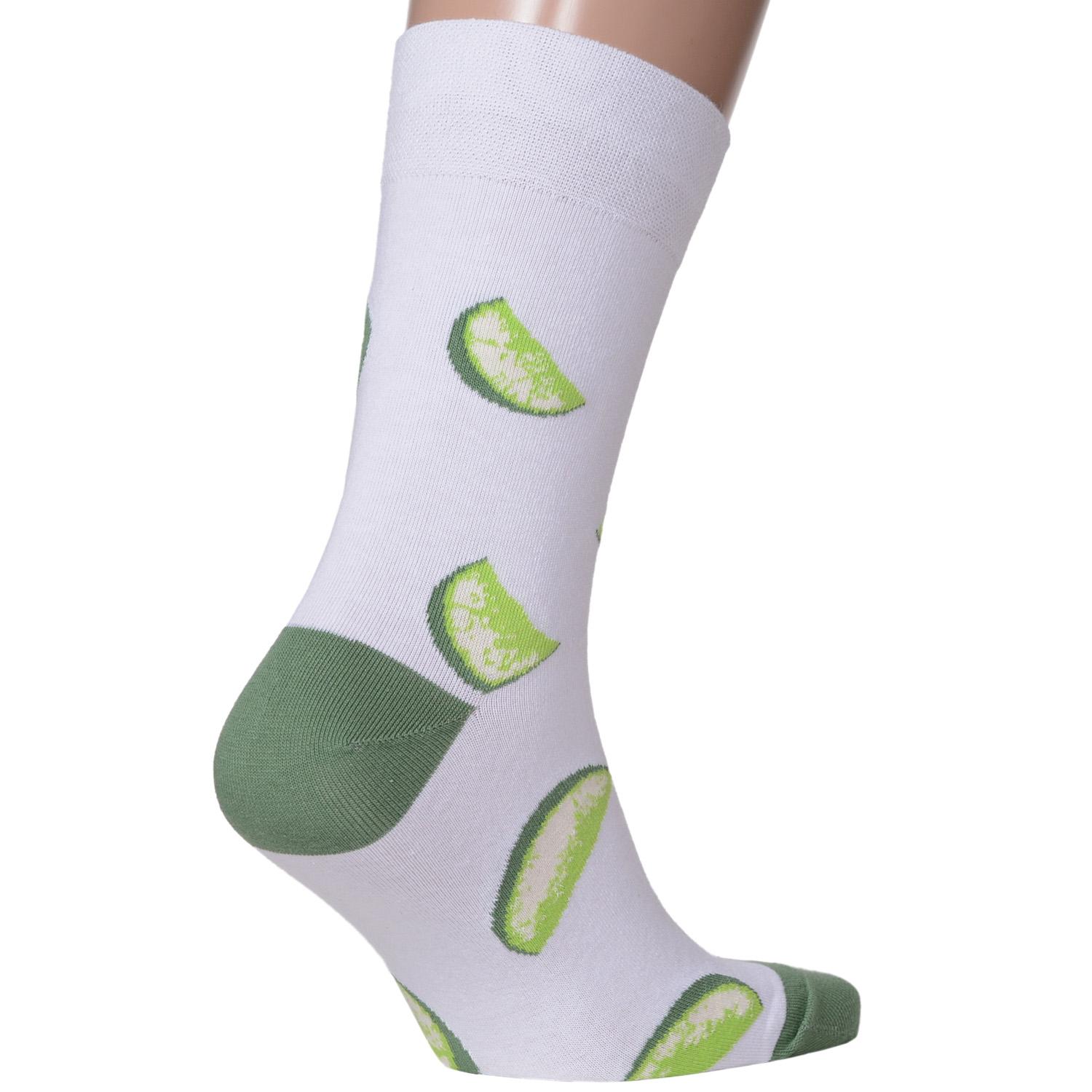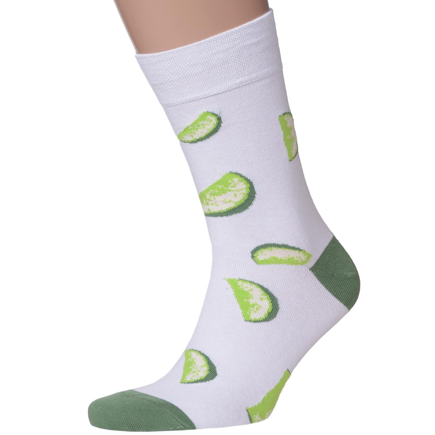 Круглогодичные средней длины мужские носки, цвет белый, повседневные, шов обычный (не бесшовные), принт (рисунок): еда и напитки, овощи / фрукты / ягоды, крупные контрастные рисунки, с узором, состав: 82% хлопок, 15% полиамид, 3% эластан, арт. Nm-275. Производитель «ИП Рыбалкин В.С., Московская область, г. Щелково» под брендом «Msclub».
